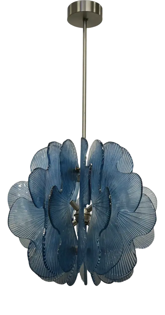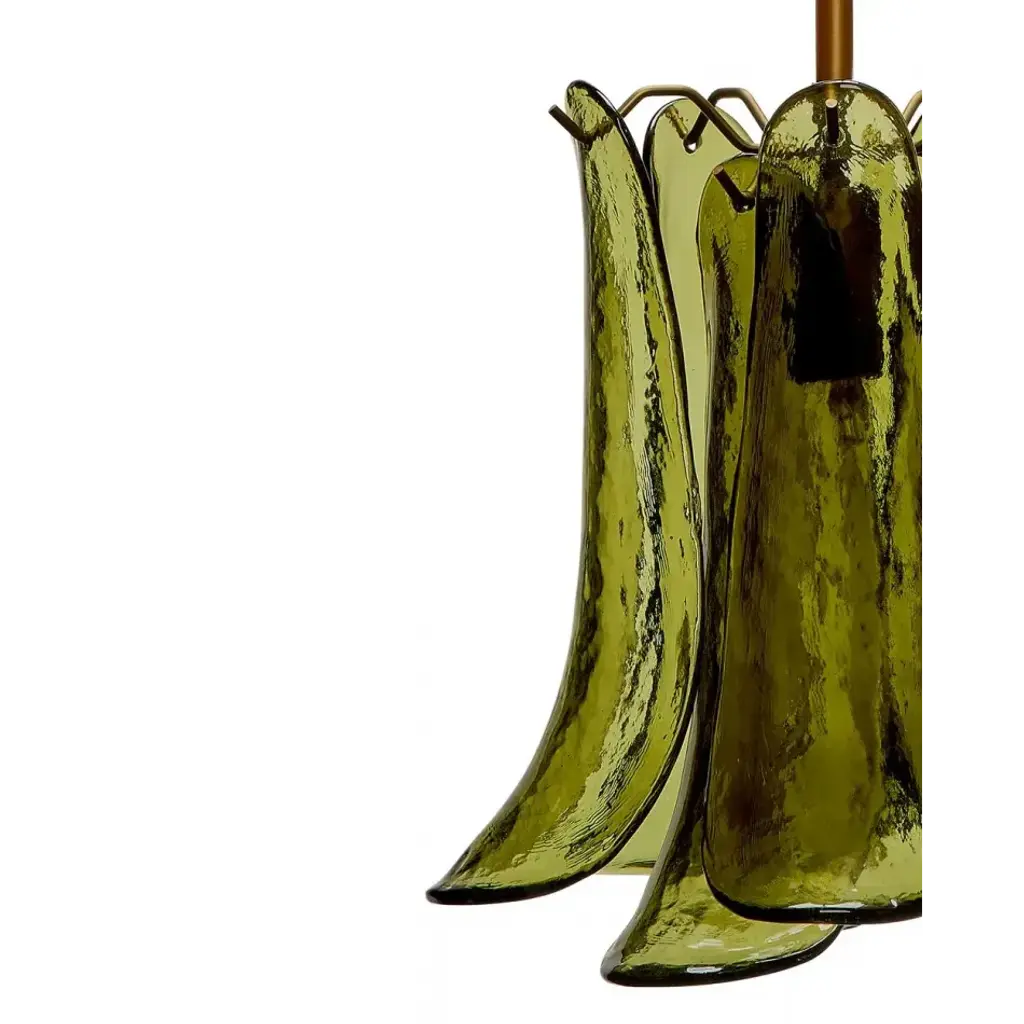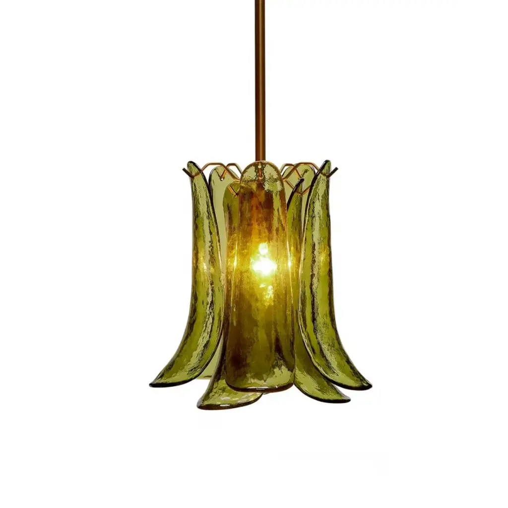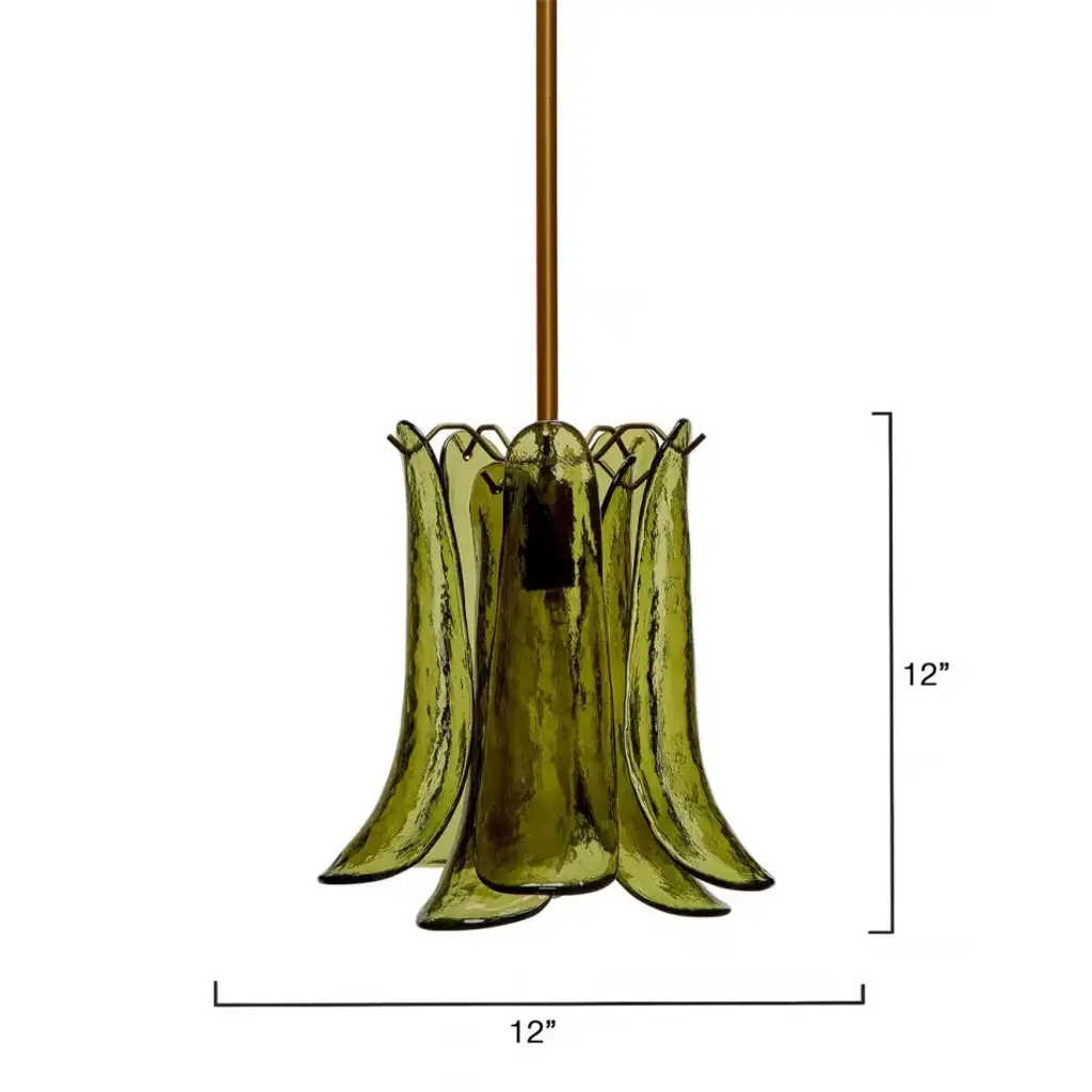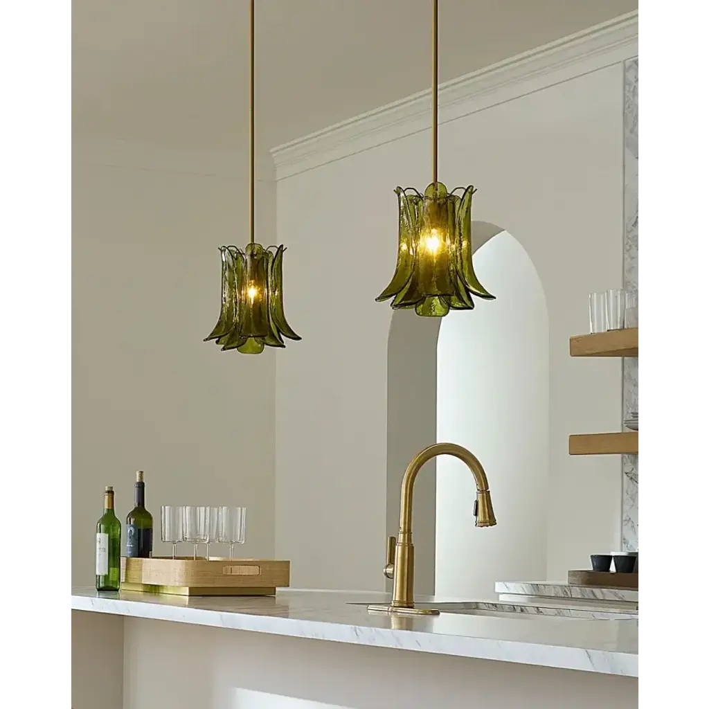 The shades of these artisan-crafted pendants were inspired by the fields of calla lilies that bloom wild in Big Sur. Featuring gracefully curved leaves in glass rimmed with a touch of metal, they hang from an adjustable antique brass rod and canopy. Traditionally hung above a table or kitchen island, they offer endless display options if you have vaulted ceilings!