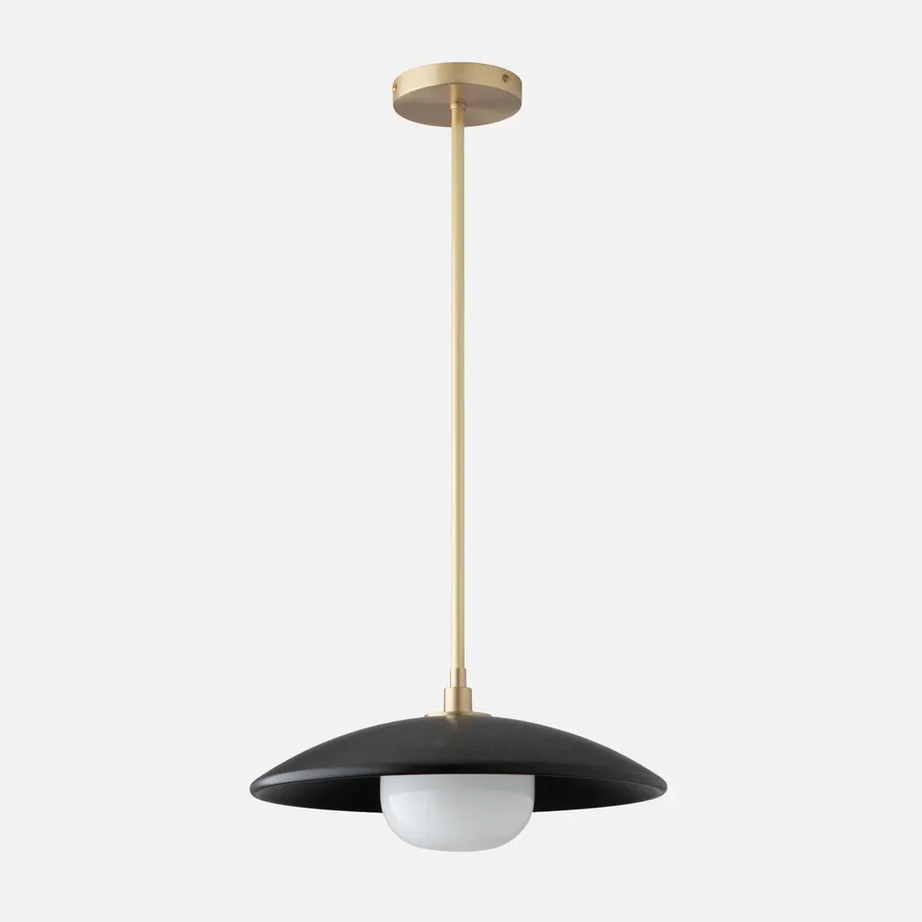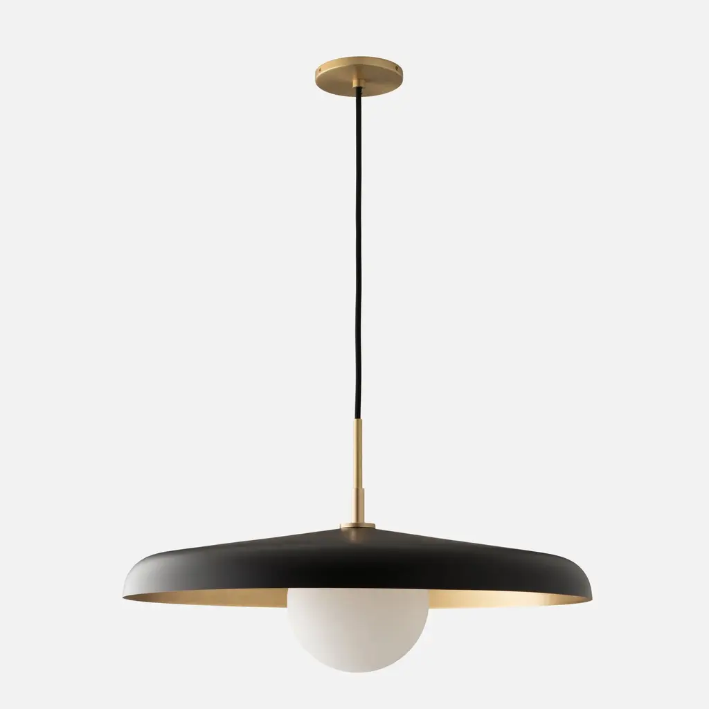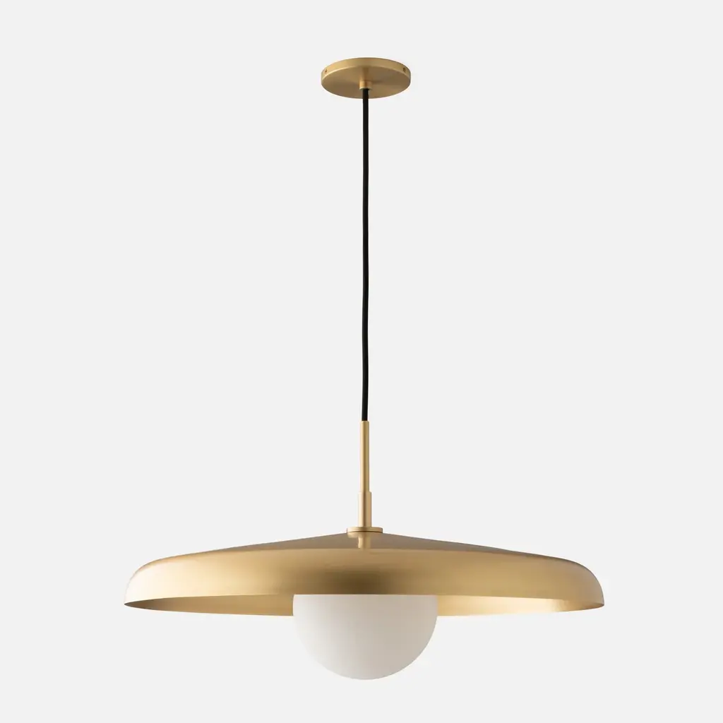 Utilitarian lighting, but make it graceful too — that’s the statement-making Caldera 26” Pendant. Designed by local Portland studio FOLK, it has a sizable metal shade that casts the light down, along with a handblown glass diffuser that softens the light for even illumination. A solid brass rod completes the enduring look.