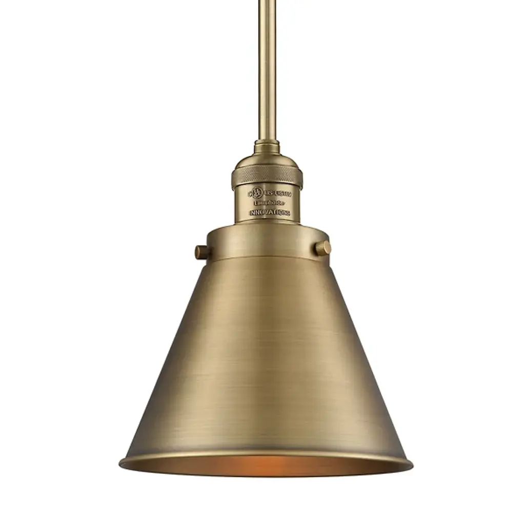 Industrial design in its most refined, stylish form. The Calen Pendant from Alder & Ore complements the room’s open feeling as a neat collection of shapes, beaming down an uplifting glow. The kitchen island, bar, or dining table all welcome this pendant’s trim silhouette and directed light. The slender down rod factors well as part of a group. This downrod leads the eye to the antique lettering and knurled accents on the lamp holder below. Topped with protruding details, the clean cone shade houses the lamping in its painted interior. The bulb’s light fans out the shade’s opening, leaving one’s tables with a pool of rich light that steps up the ambiance.