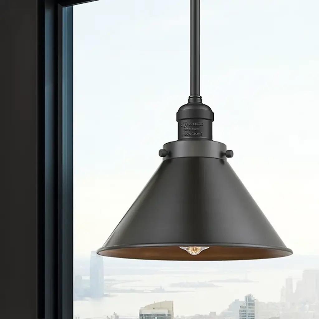 Industrial design in its most refined, stylish form. The Calen Pendant from Alder & Ore complements the room’s open feeling as a neat collection of shapes, beaming down an uplifting glow. The kitchen island, bar, or dining table all welcome this pendant’s trim silhouette and directed light. The slender down rod factors well as part of a group. This downrod leads the eye to the antique lettering and knurled accents on the lamp holder below. Topped with protruding details, the clean cone shade houses the lamping in its painted interior. The bulb’s light fans out the shade’s opening, leaving one’s tables with a pool of rich light that steps up the ambiance.
