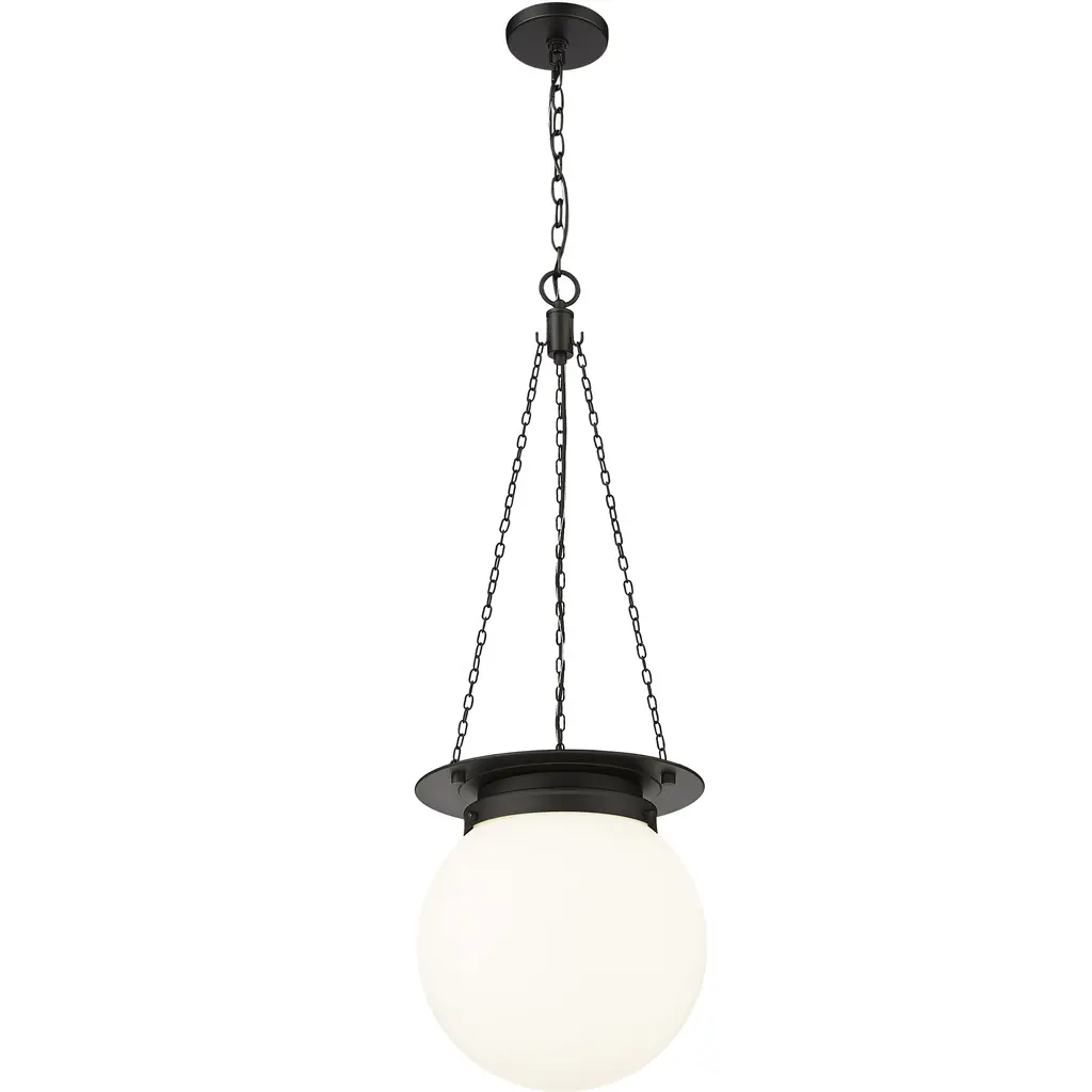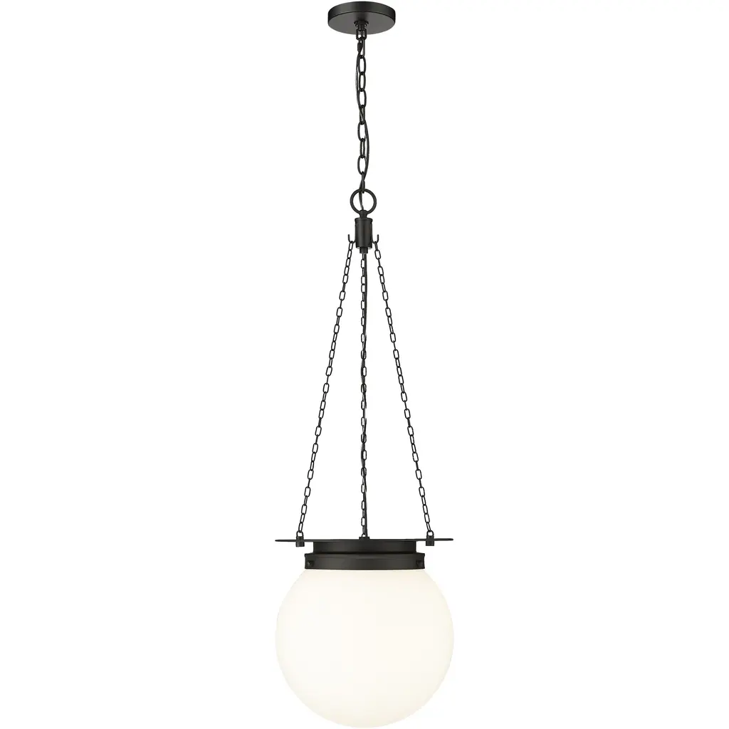 Mid-Century Modern and Schoolhouse styles reflect in this one-light pendant from the Calhoun collection, delivering a clean artistic look in contemporary and transitional living room, dining room, and foyer settings. This chic fixture stands out with a milk glass globe attached to matte black finish steel framing and metal accents, creating a bold signature statement with easy style.