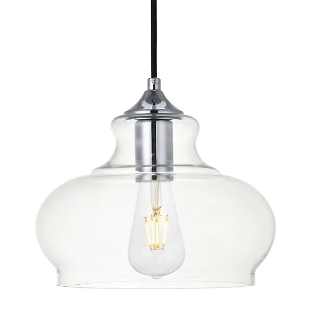 A trend in home decor is the repurposing of antique pieces. Calhoun playfully follows this trend with an apothecary style clear glass diffuser held in place with a mechanical latch from a spice container. A glass shade showcases a thickened profile to create a vintage-style surface for a classic handmade appearance. The vintage design is a perfect complement to several decor styles including the popular Farmhouse trend. One-Light Pendant with a Brushed Nickel finish.