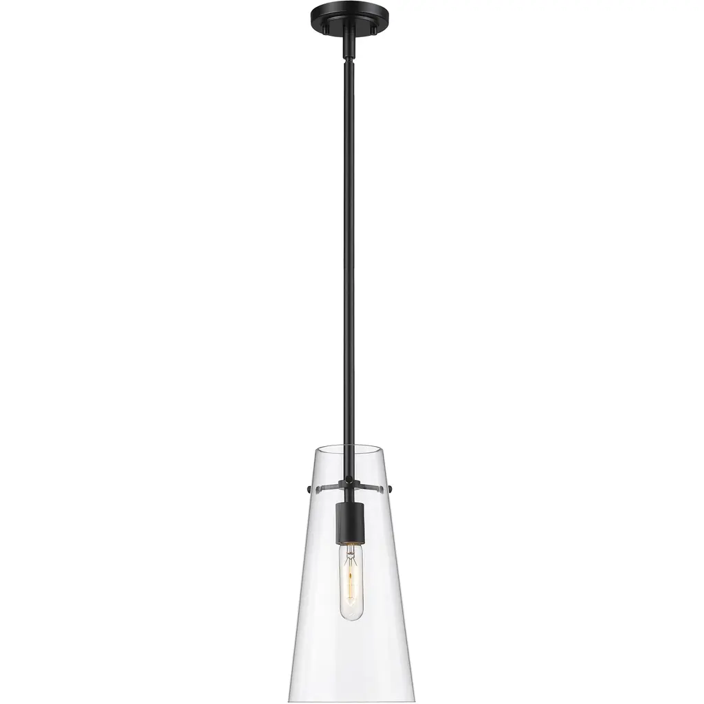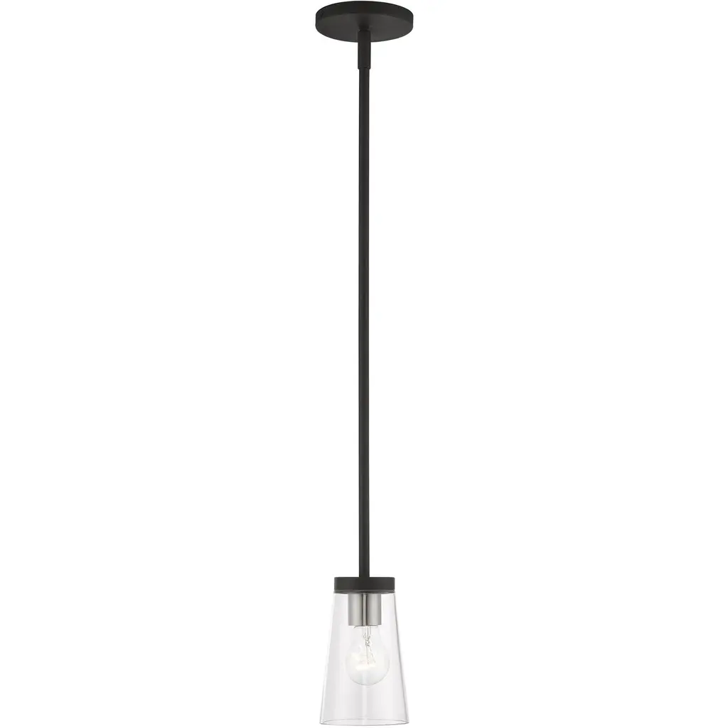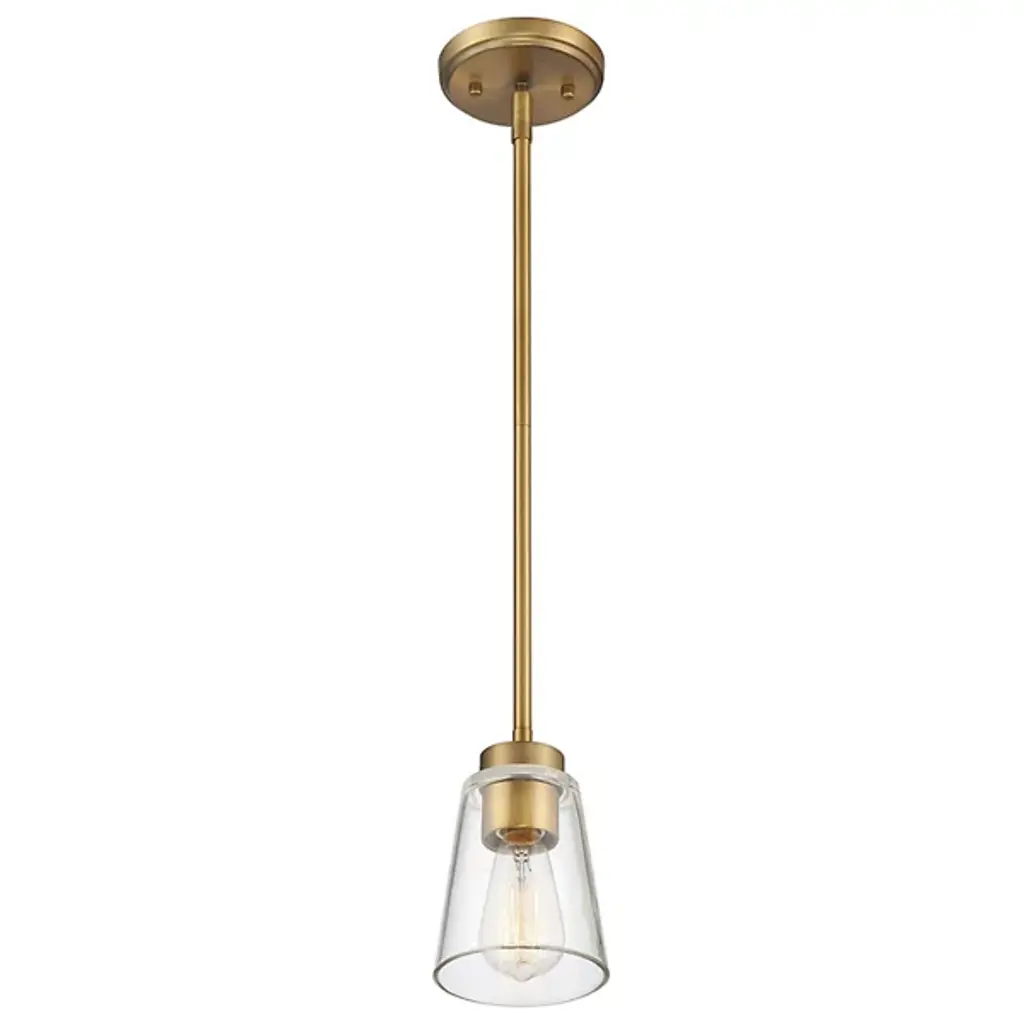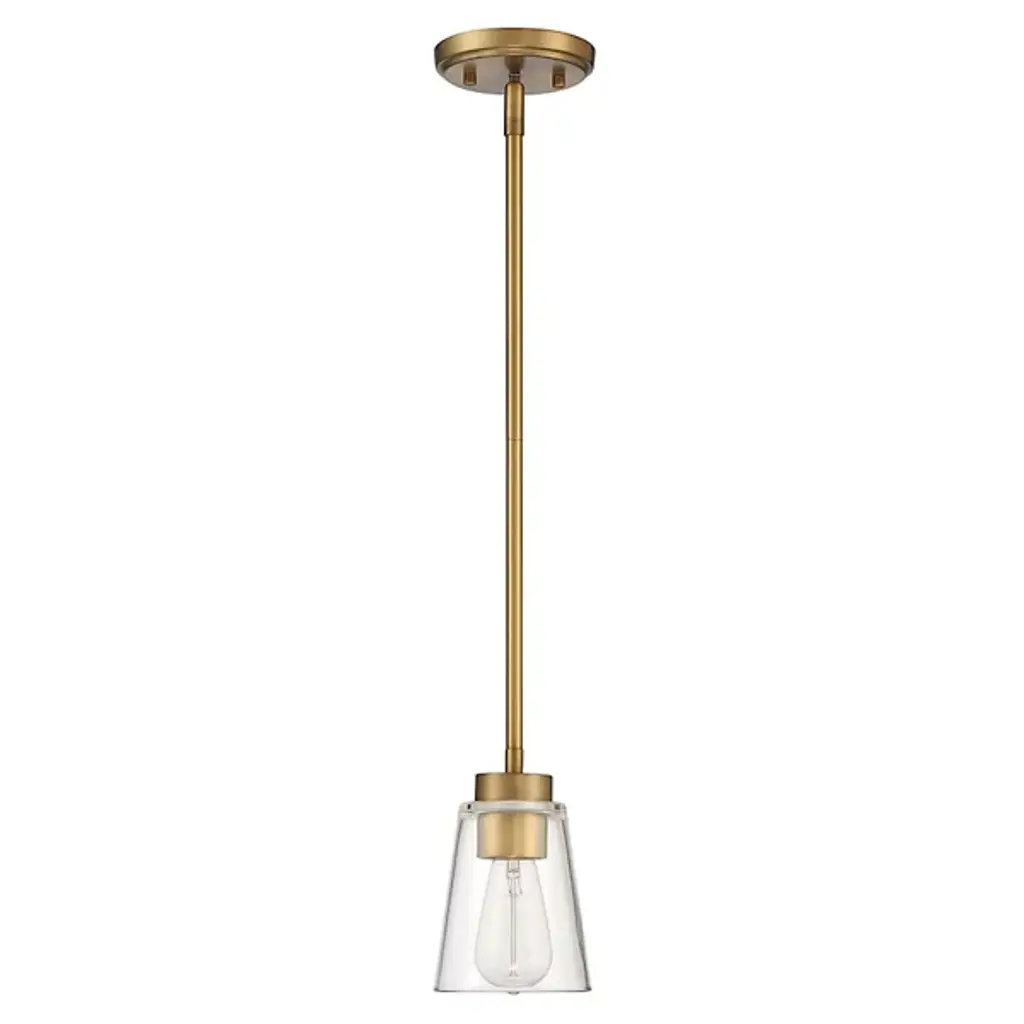 The Calhoun Mini Pendant by Savoy House has a clean, contemporary look. With simple lines, a sleek downrod and round canopy support this mini pendant, holding a slightly tapered, clear glass shade that a single, visible bulb is housed within. Offering a bright touch to modern spaces, a beautiful finish dresses up the metal elements of this design, allowing it to complement a wide range of spaces and décor styles.