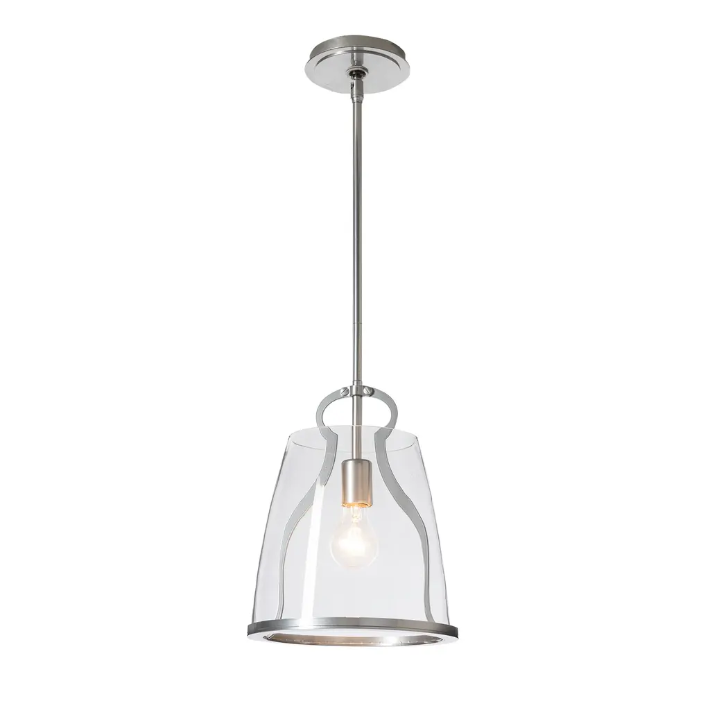 The Caliper Pendant by Hubbardton Forge radiates a nostalgic sentiment in its throwback design. Inspired by the antique tool of its namesake, this handcrafted pendent features an industrial metal form encased in a clear or smoked glass shade. The result is a simple yet striking conversation piece perfect to adorn any room in your home, including dining room and kitchen.Shown in Sterling finish with Plated Smoke glass