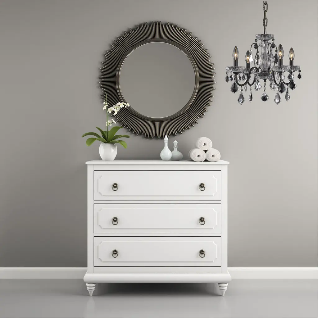 An updated look at the traditional chandelier genre, Calista collection hanging fixtures are a stunning presence in a dining room, living room, or stairwell. Sweeping, curved arms and a crystal-covered steel frame in chrome or dark bronze form the gorgeous base of this eye-catching design. Resplendent with sparkling clear royal-cut crystal pendalogues and dainty crystal bobèches, Calista chandeliers are a divine addition to your home.