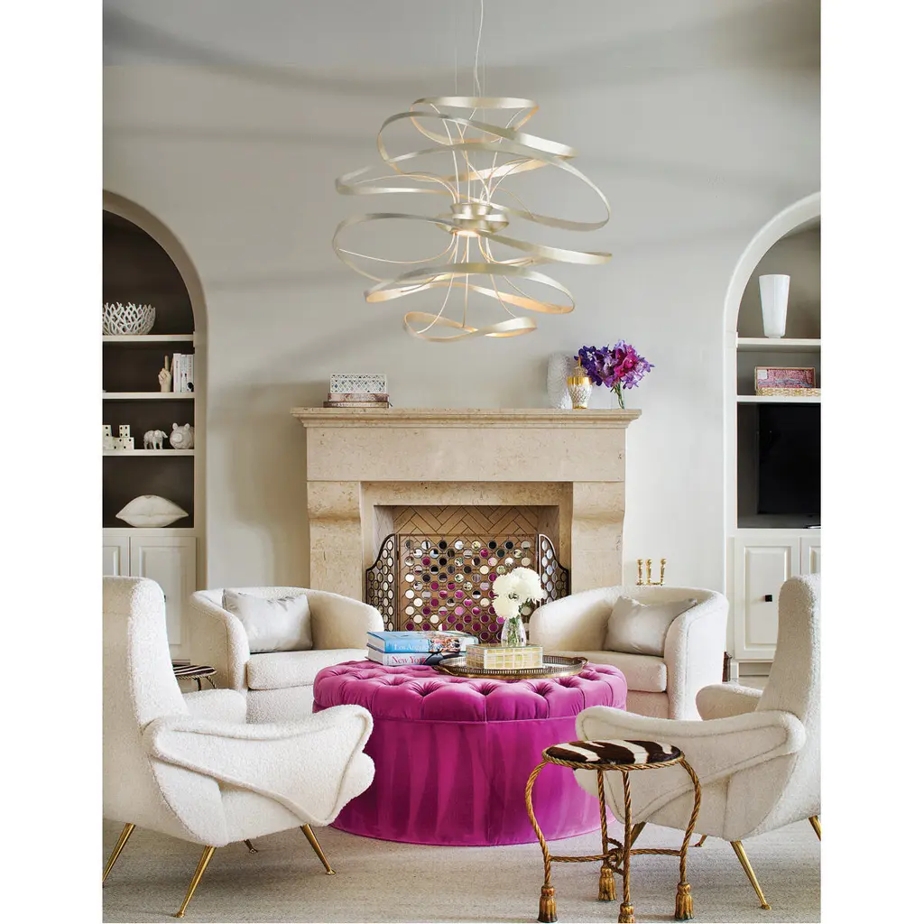 An airy and sculptural interpretation of the art of exquisite hand lettering, Calligraphy evokes swirling script flowing across the page – as if right from the artist’s instrument. At its core are two powerful LED light engines surrounded by floating bands held in place by thin, curving lines.