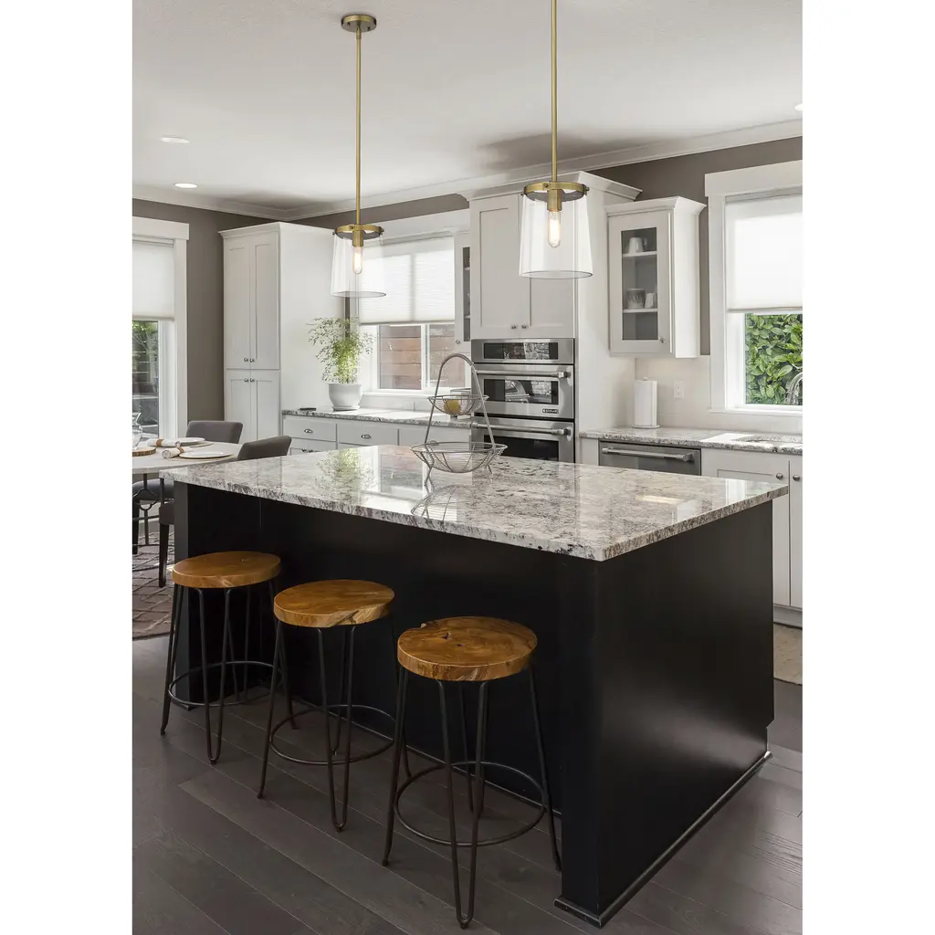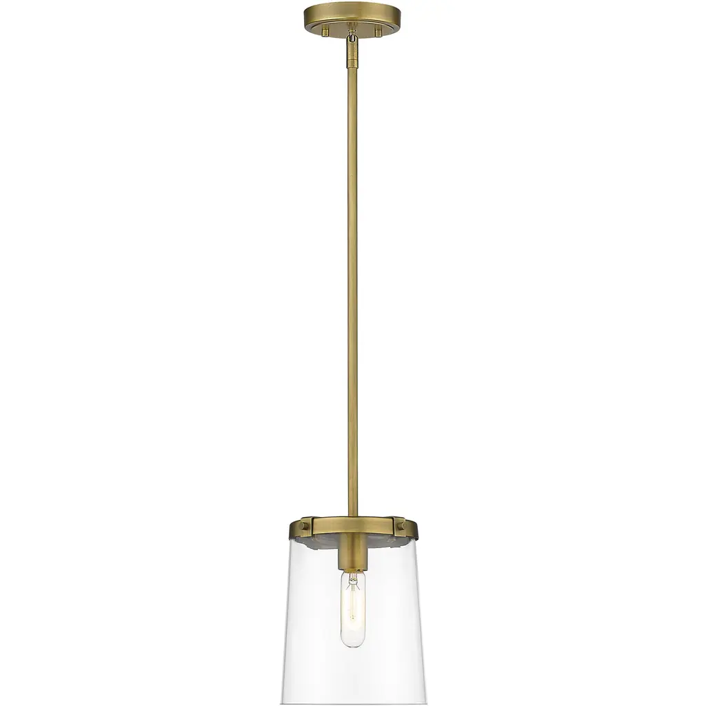 This sleek, metal mini pendant light blends a rich, rubbed brass finish with a tasteful, tapered glass shade to complement decor. This classic fixture is ideal for illuminating a transitional kitchen or dining room.