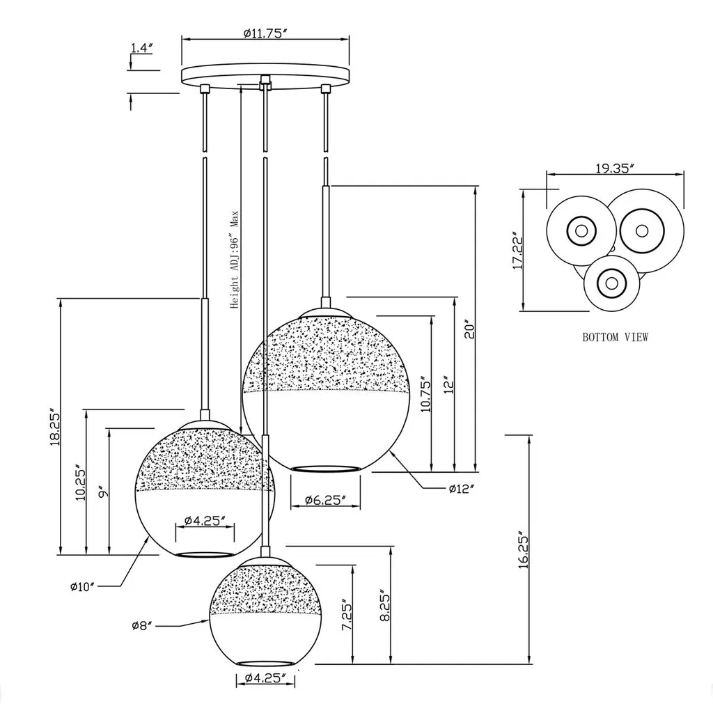 Forte Lighting 2760-03-04 Three-Light 17.25 in. Wide Ombre Glass Pendant in Black Finish with Chrome Ombre Globe Glass Shade