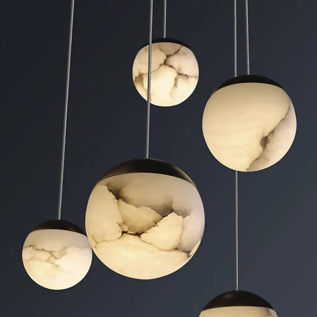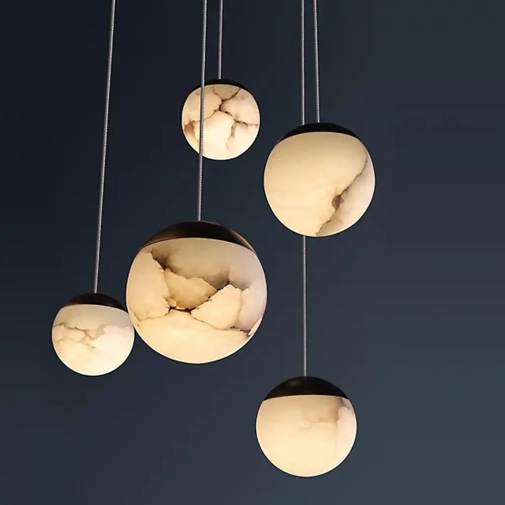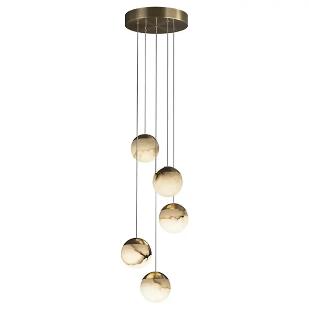Bring a mid-century modern look to your living space with the Callisto LED Multi-Light Pendant by Boyd Lighting. Beautiful spheres crowned by fine metal gracefully cascade in midair. These spheres are secured by a canopy at your ceiling. An integrated LED brilliantly illuminates alabaster shades, giving your environment a pleasant glow. Easily adjust the brightness level of the light produced when you pair this Boyd Studios fixture with an ELV dimmer.