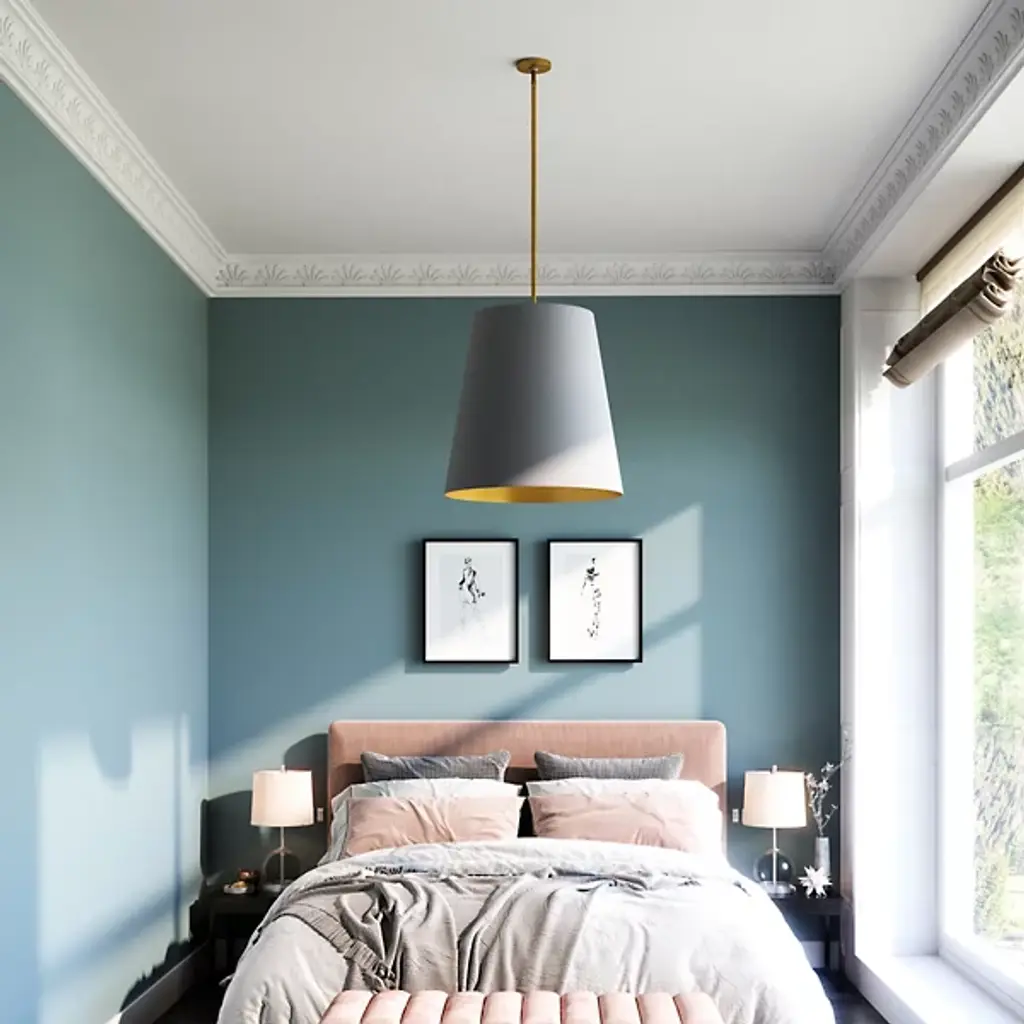 Crank up the heat of your home décor with the Calor Pendant from Alora Lighting. A slim disc canopy of steel extends a slender stem downwards into a large, flared linen shade that surrounds the lamping from the sides. Its smooth, opaque sides screen out bright light at eye level, while a reflective interior focuses light into a broad, potent pool below the fixture. Simple, clean-surfaced, and elegant, it blends easily in with a variety of décor styles.