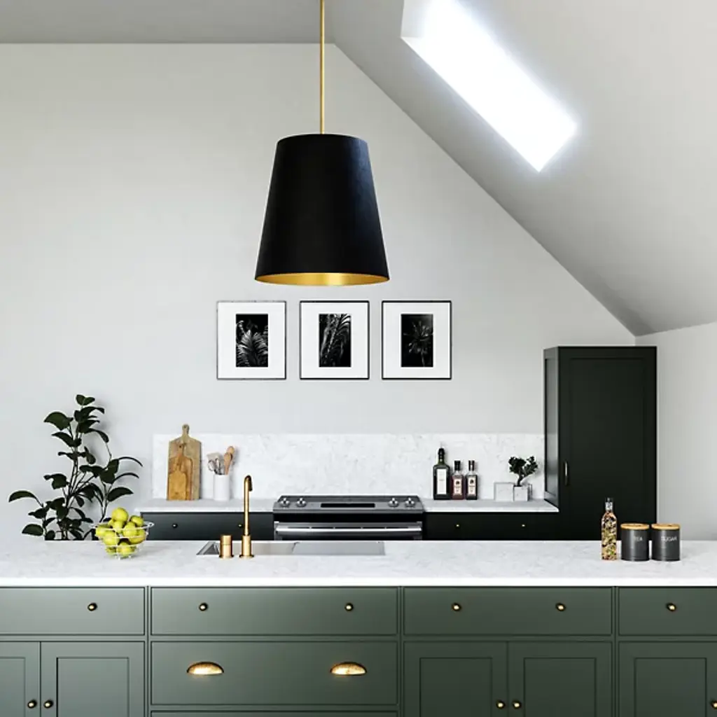 Crank up the heat of your home décor with the Calor Pendant from Alora Lighting. A slim disc canopy of steel extends a slender stem downwards into a large, flared linen shade that surrounds the lamping from the sides. Its smooth, opaque sides screen out bright light at eye level, while a reflective interior focuses light into a broad, potent pool below the fixture. Simple, clean-surfaced, and elegant, it blends easily in with a variety of décor styles.