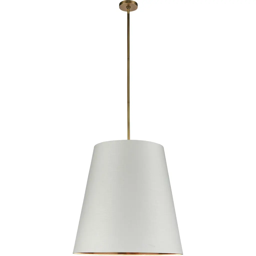 Calor Pendant Ceiling Light In Gray Linen With Gold Parchment And Vintage Brass