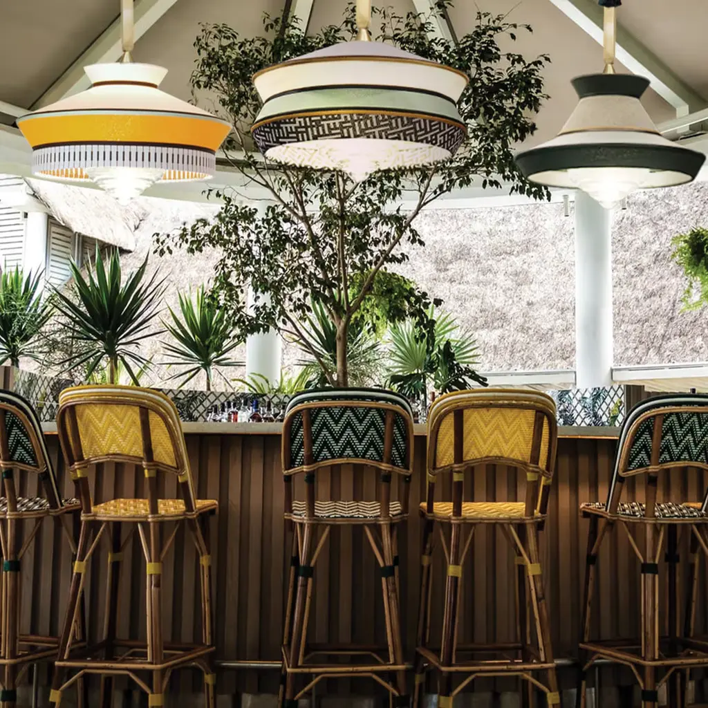 Calypso family grows with the matt gold lacquered suspensions in XL format also in IP65 outdoor version in , with the same characteristics as the standard versions. Available in the three famous combinations Antigua Mint, Guadaloupe Sale e Pepe and Martinique Yellow, on request, it is also possible to order the other colors of Calypso SO collection. Light source: 1 X E27 T8 Tubular LED bulb ip65.