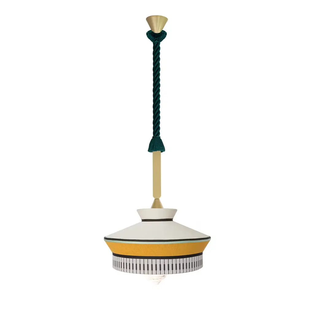 Calypso family grows with the matt gold lacquered suspensions in XL format also in IP65 outdoor version, with the same characteristics as the standard versions. Available in the three famous combinations Antigua Mint, Guadaloupe Sale e Pepe and Martinique Yellow, on request, it is also possible to order the other colors of Calypso SO collection. Light source: 1 X E27 T8 Tubular LED bulb ip65.