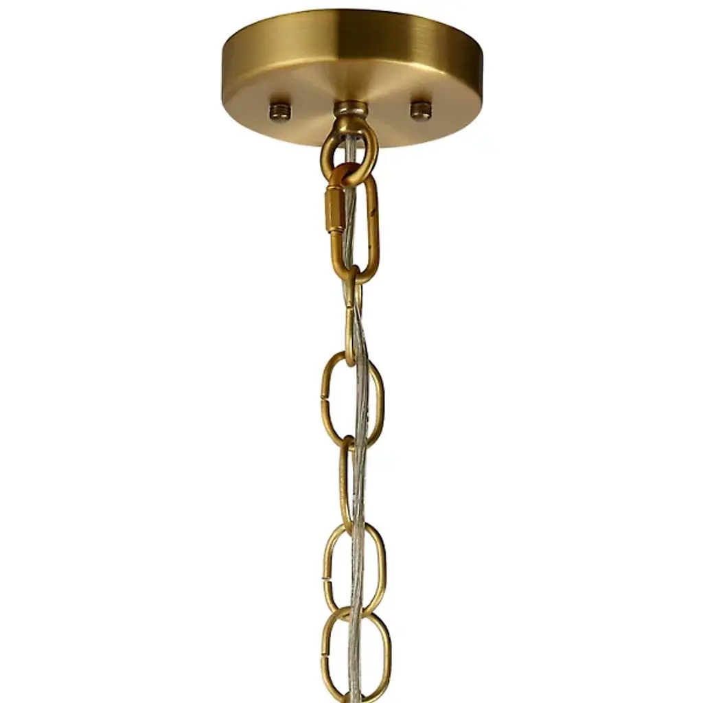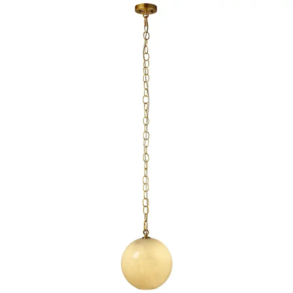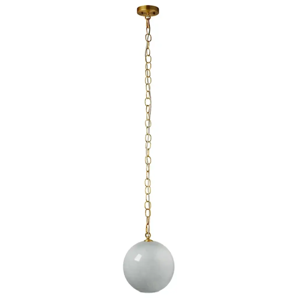 The Camber Pendant from Jamie Young Co. features an expertly hand-blown glass sphere suspended from burnished antique brass links with a coordinating brass canopy. Its timeless design adds a touch of sophistication, whether illuminating a cozy corner or enhancing an entryway. Stunning on its own, it also makes a striking statement when grouped over a kitchen island or dining table. With its warm glow and refined simplicity, this pendant brings elegance and an inviting ambiance to any space.