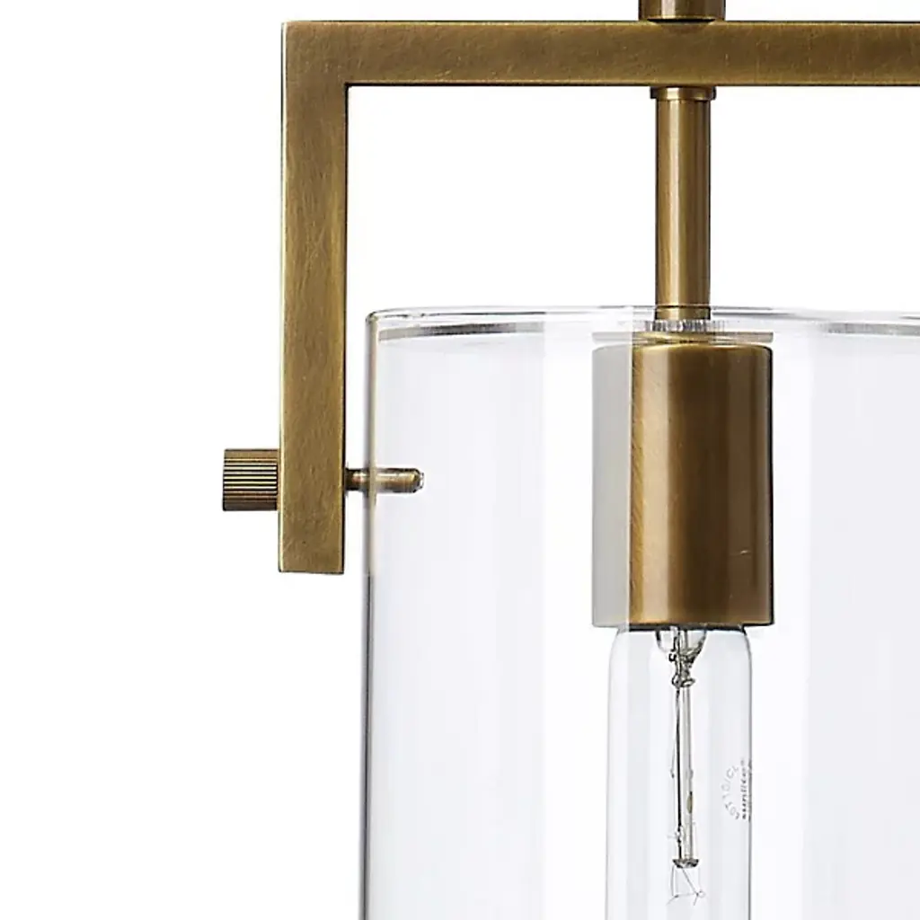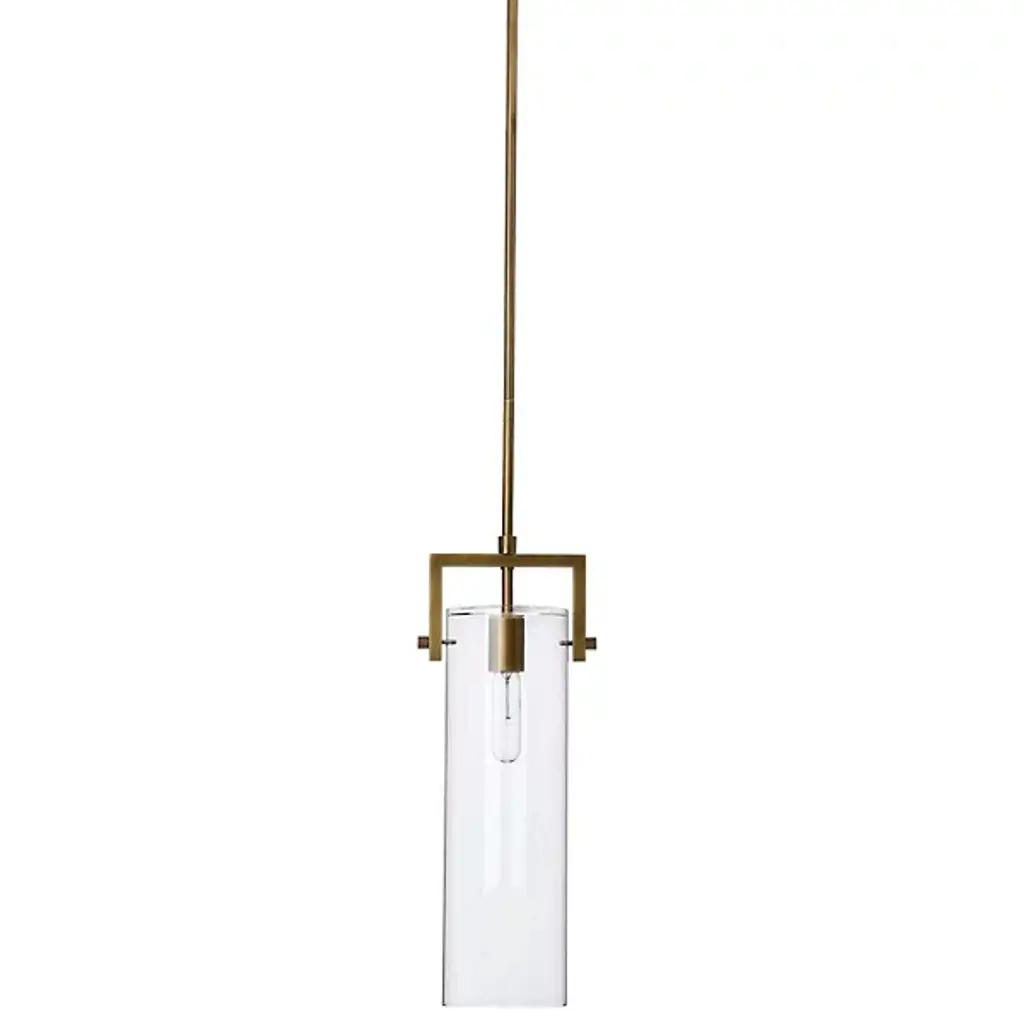 The Cambrai Pendant from Jamie Young Co. drops down with precision, treating the eyes to a balanced blend of modern and industrial notes. This chic piece's slim profile is ideal in a tight space alone or grouped over a communal room. It draws a graphic silhouette with a metal rod structure and angular hardware. A cylindrical glass shade puts the bulb in clear view, allowing it to shine freely to deliver a spirited downward-cast light.