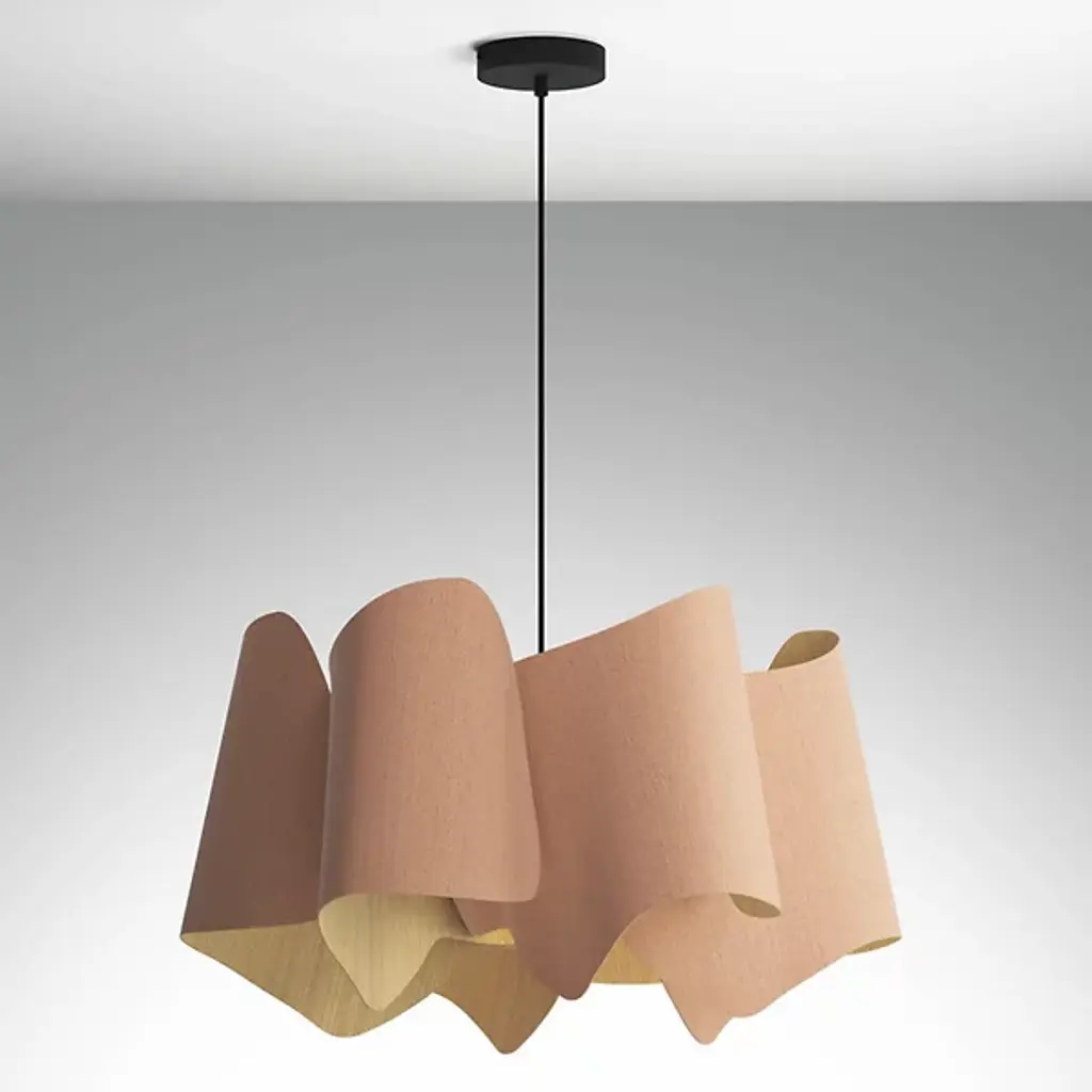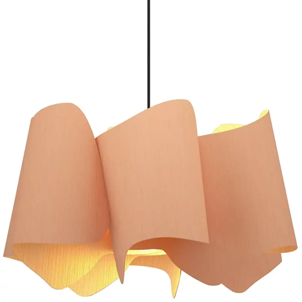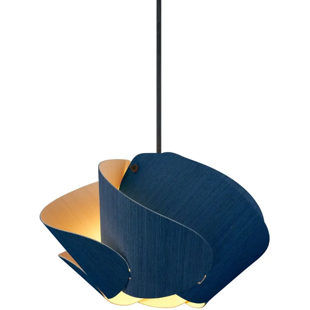 A rhapsody of graceful waves, the Camila Pendant by Bruck Lighting is a collaborative design inspired by the beauty of natural landscapes. Part of the Wood Ecological Project, WEP lights use two-sided Wood Veneer sections, curved into distinctive shapes and fused together for an artful aesthetic. Each pendant is hand-painted, creating a truly unique look. When lit, the design comes alive with warm ambient light filtering through the gaps, making it perfect for overhead lighting in an entryway, bedroom, or dining room.