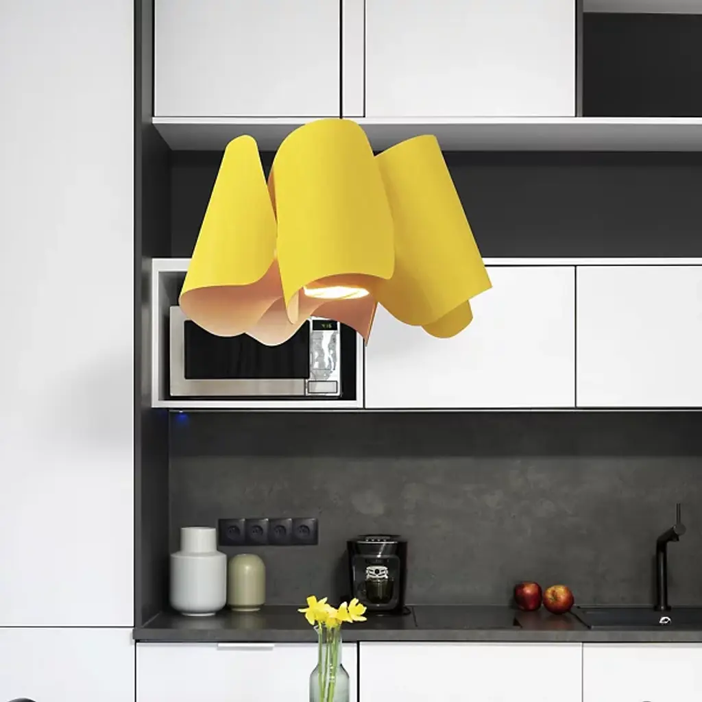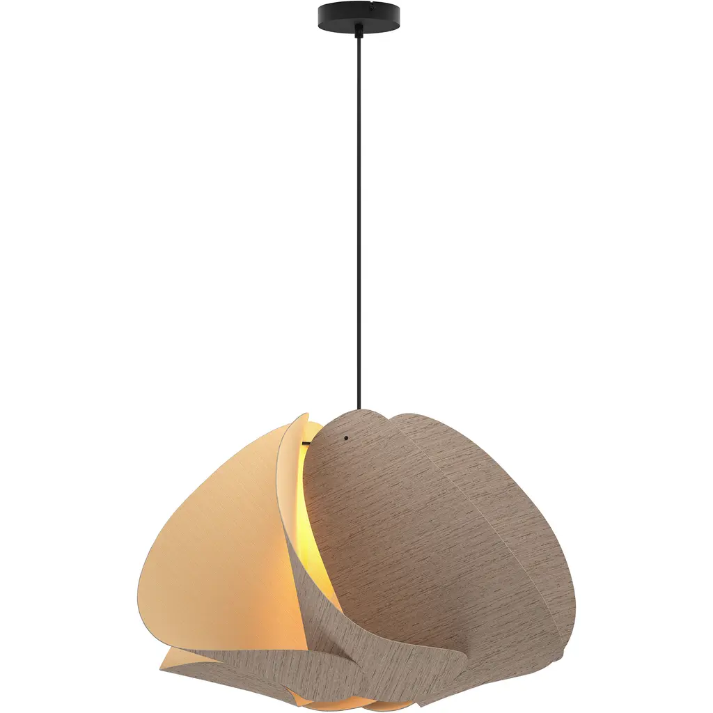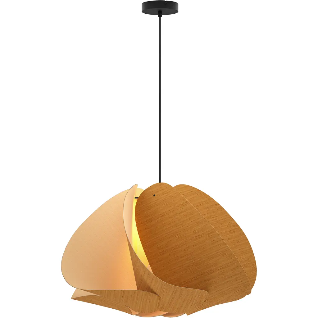 A rhapsody of graceful waves, the Camila Pendant by Bruck Lighting is a collaborative design inspired by the beauty of natural landscapes. Part of the Wood Ecological Project, WEP lights use two-sided Wood Veneer sections, curved into distinctive shapes and fused together for an artful aesthetic. Each pendant is hand-painted, creating a truly unique look. When lit, the design comes alive with warm ambient light filtering through the gaps, making it perfect for overhead lighting in an entryway, bedroom, or dining room.