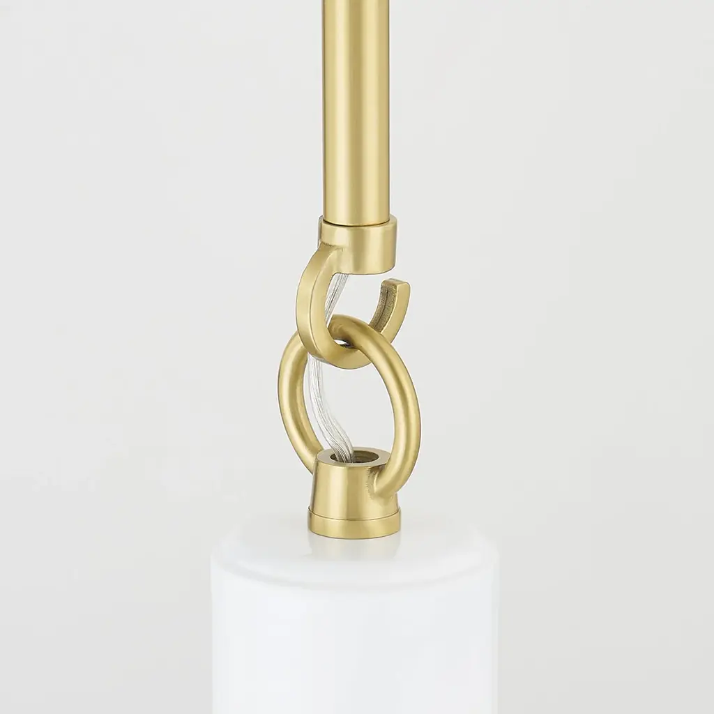 The Camille wall sconce and pendant draws her best features from French design. Aged brass details pop against the glossy black or white dome outfitted with a white interior. From an industrial form to Mid-century styling, Camille may be vintage inspired but was certainly made for modern homes.