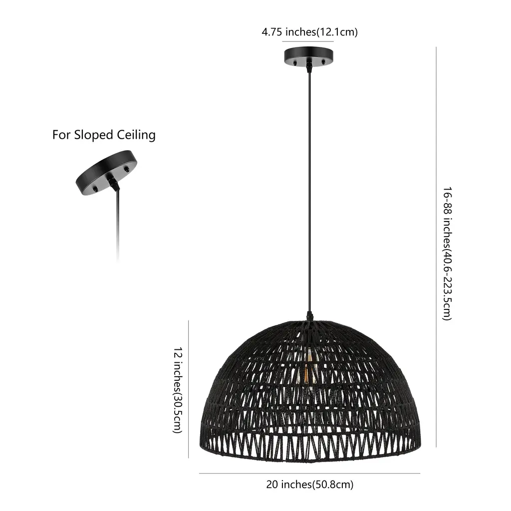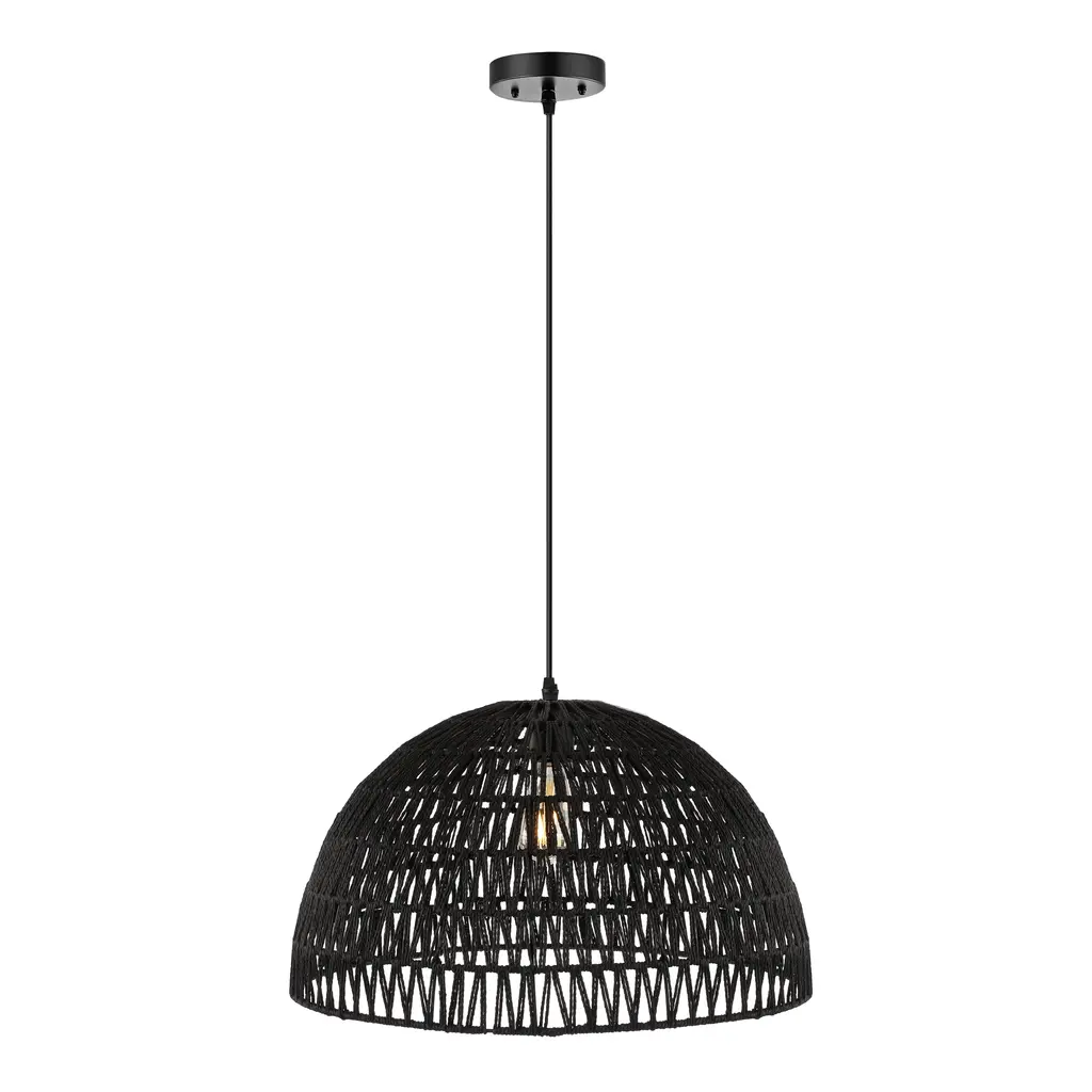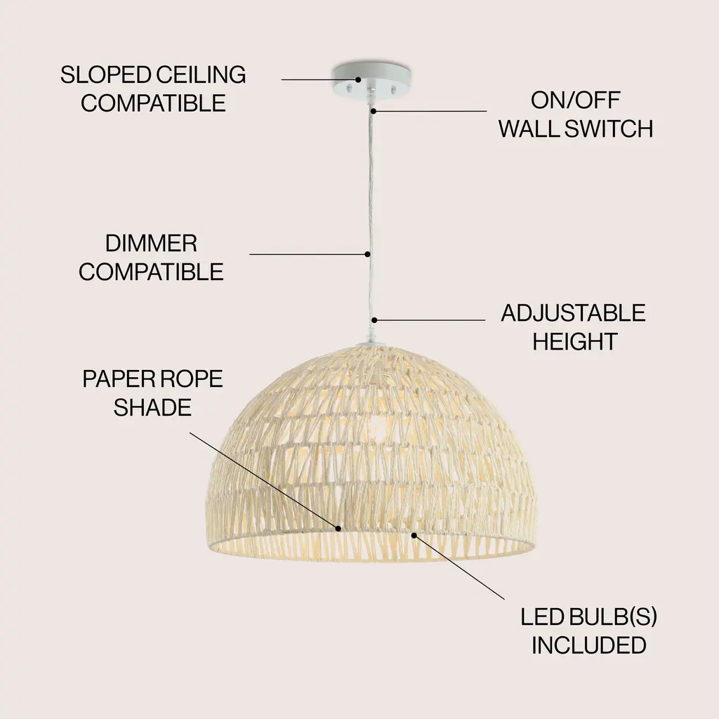 Modern design meets traditional craftsmanship in our gray woven dome pendant. Made from paper wicker woven onto a sturdy metal frame, this ceiling fixture adds a Bohemian touch to your living room, bedroom, or dining room. Additionally, the drop is adjustable from 16" to 88", making it suitable for a ceiling of any height.