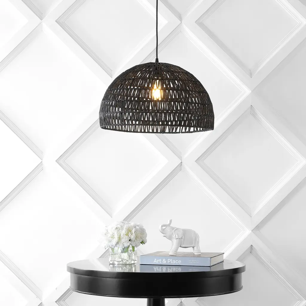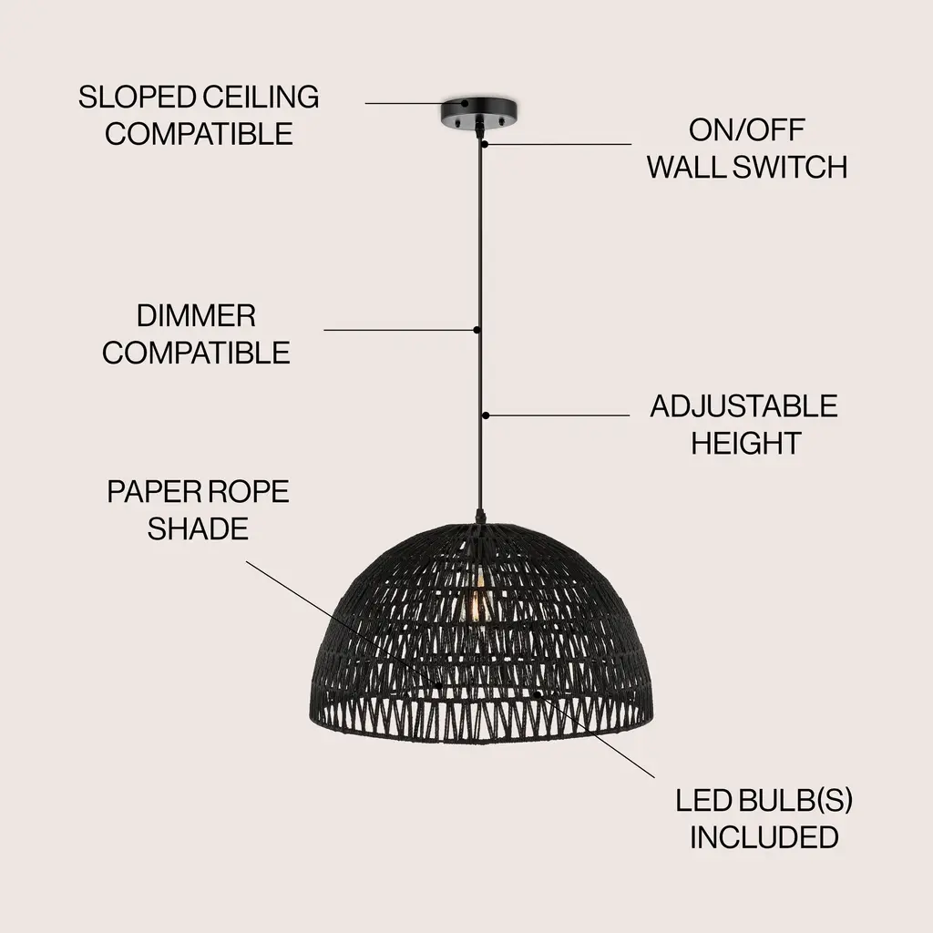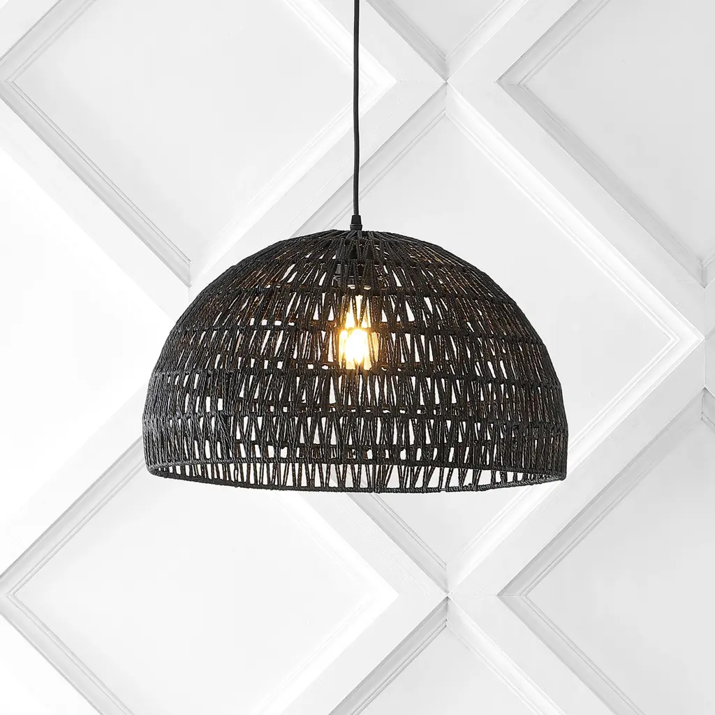 Campana 1-Light Bohemian Modern Woven Rope/iron Led Pendant - Black