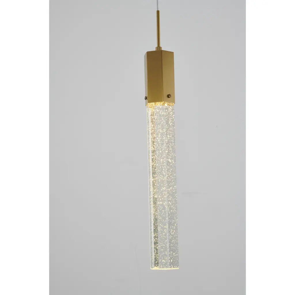 This pendant is a clear hexagon bubble crystal pendant light. It comes with gold hardware. The cord length of 1.5 meters is provided and the cord length is adjustable.