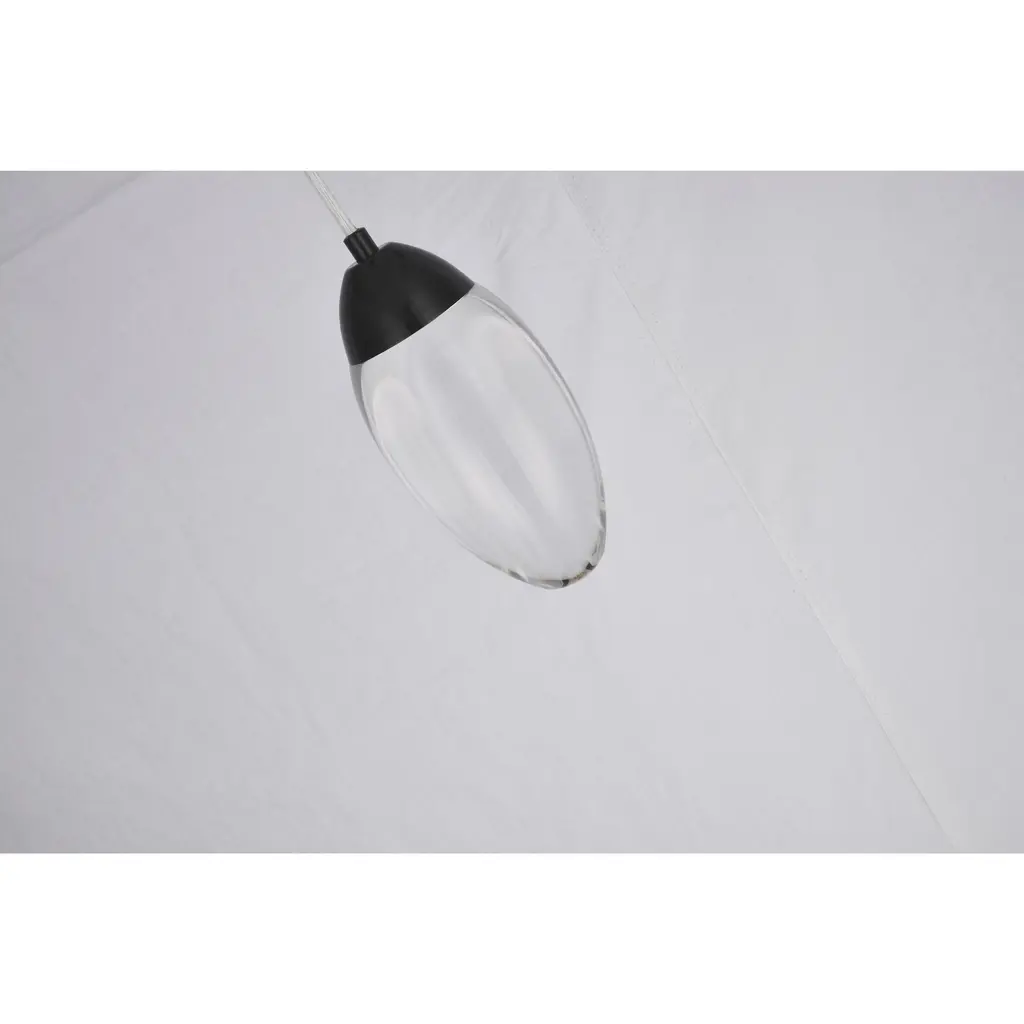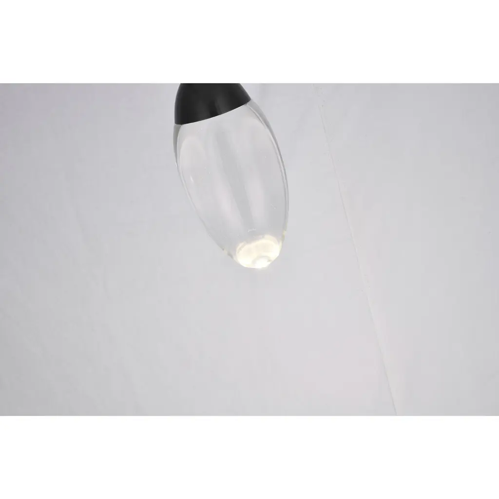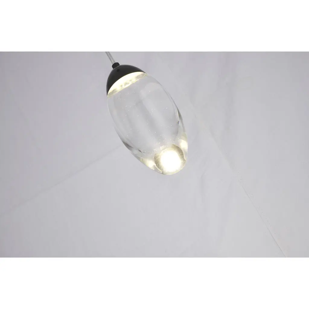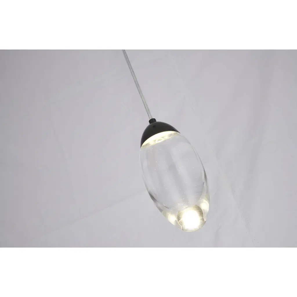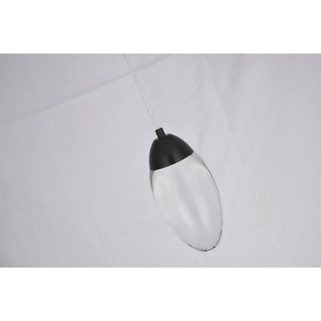 This exquisite LED pendant is in a matte black finish. The frame is made out of metal, and it comes with a clear crystal shade. The LED bulb is integrated into the frame. The adjustable cord link makes this fixture suitable for most ceiling heights.
