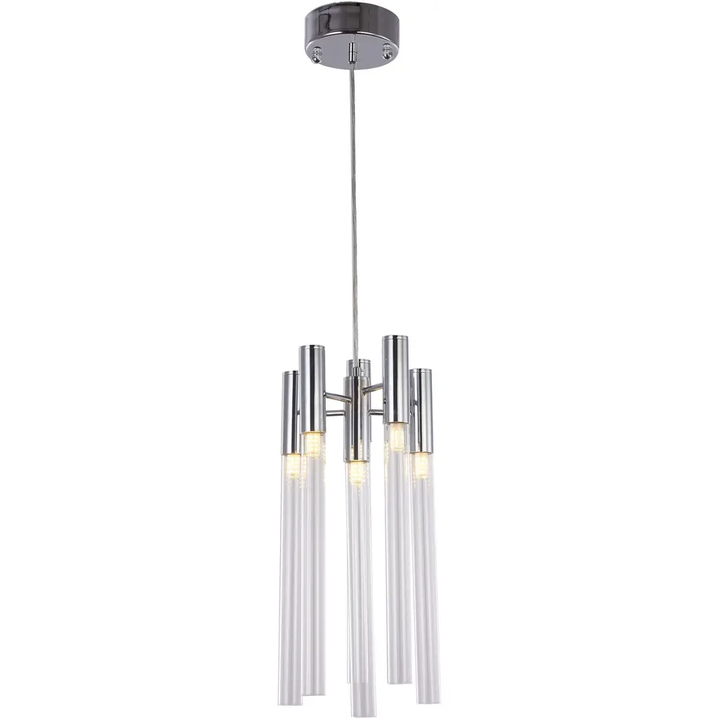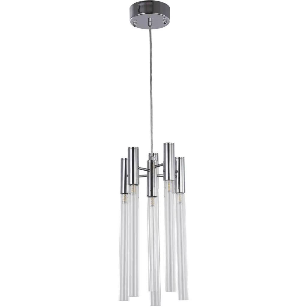 This traditional pendant features a chrome metal frame that adds a touch of luxury and sophistication to any room, paired with a glass tubes that add a sense of modernity and simplicity. The fixture has a height of 17.7 inches and a diameter of 7.8 inches, making it a compact and stylish addition to any space. The lighting fixture is designed to accommodate 6xG9LED bulbs (Bulbs Not Included), each with a wattage of 5W, providing a bright and energy-efficient glow. The combination of chrome frame and glass tubes creates a beautiful contrast that is sure to catch the eye, making this pendant light a perfect addition to any room such as bedrooms, living rooms, kitchens, or hallways.