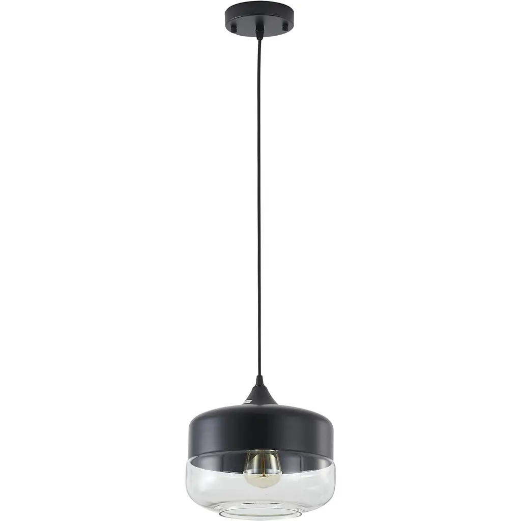 This 1-Light traditional pendant presents a stunning design that works beautifully in any kitchen, entryway, storage room, bedroom, or dinning room. Crafted with a matte black metal frame and a clear glass shade, the fixture blends function with style for a unique look that is sure to impress. The adjustable cord link makes this fixture suitable for most ceiling heights.