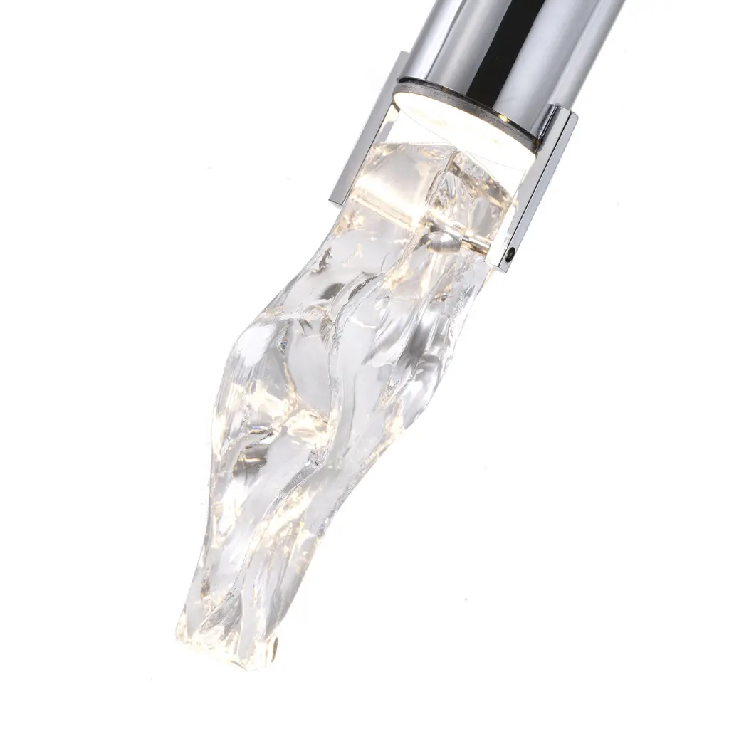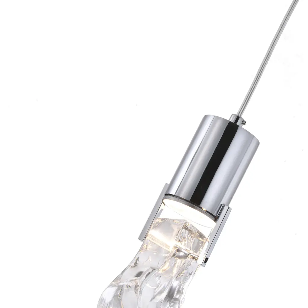 This single pendant is a sleek and transitional lighting fixture that adds a touch of sophistication to any room. Measuring 2 inches in length, 2 inches in width, and 8.2 inches in height, this pendant light is designed to provide a subtle yet effective source of lighting. The chrome finish provides a durable and stylish base for the clear crystal accent, which adds a touch of elegance and refinement. With 1xGU10 sockets and 40W bulbs (Bulbs Not Included), this fixture produces a warm and cozy light that is perfect for bedroom, living room, kitchen island, or hallway.