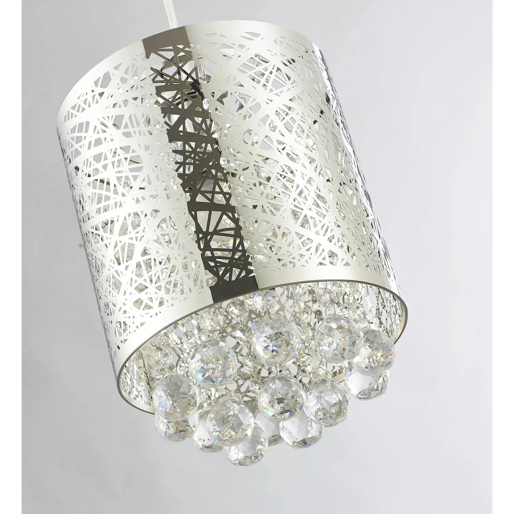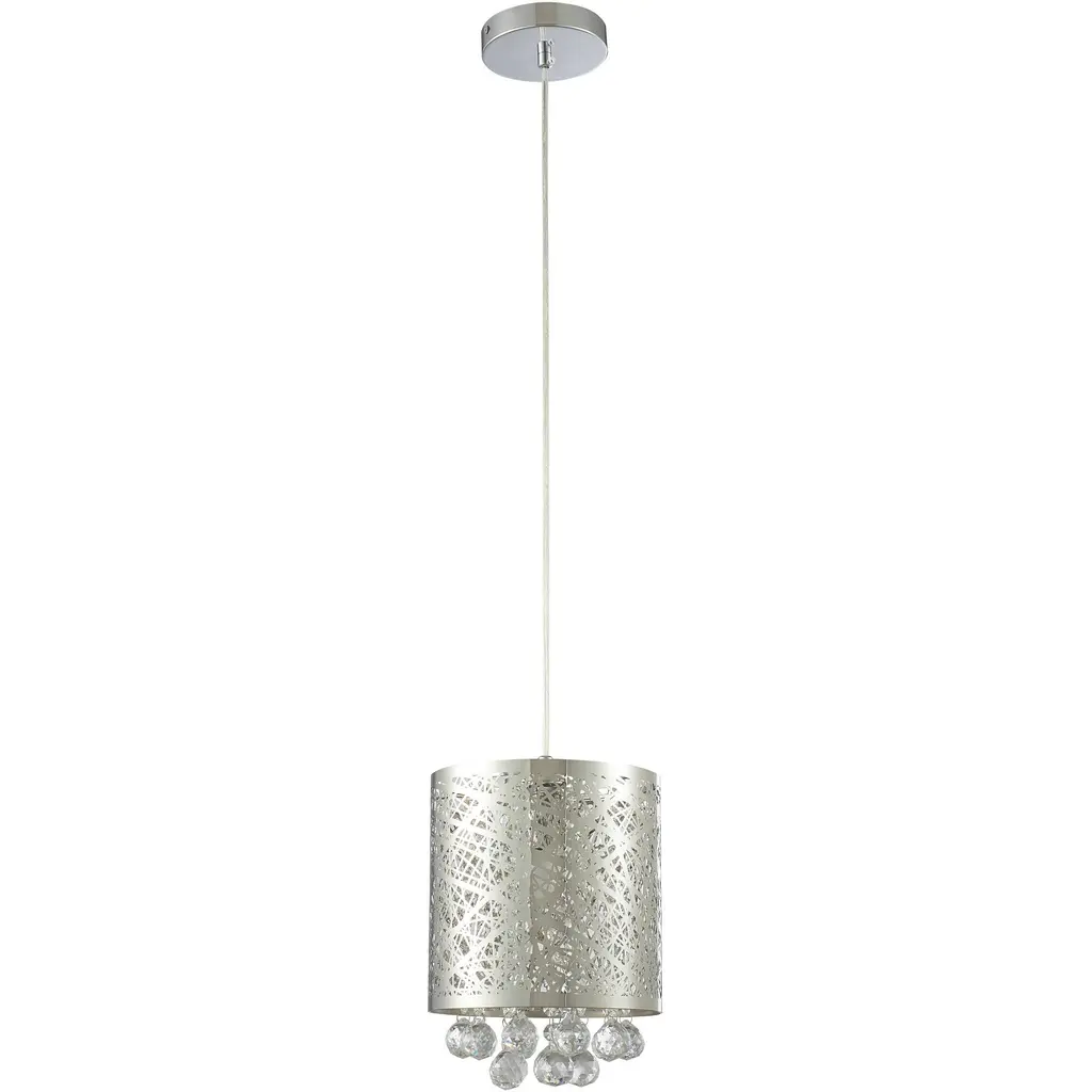 This single pendant is a transitional and sleek lighting fixture that features a chrome finish and a laser-cut clear crystal design. With a compact and minimalist profile, it measures 8 inches in diameter and 8 inches in height, making it a great option for adding ambient lighting to any room. This pendant light is powered by a single E26 socket, which can hold a 60W bulb (Bulbs Not Included), providing a warm and cozy glow. The chrome finish gives it a sleek and modern look, while the laser-cut clear crystal design adds a touch of elegance and sophistication. This fixture is perfect for use in bedroom, living room, hallway, dinning room, or kitchen.