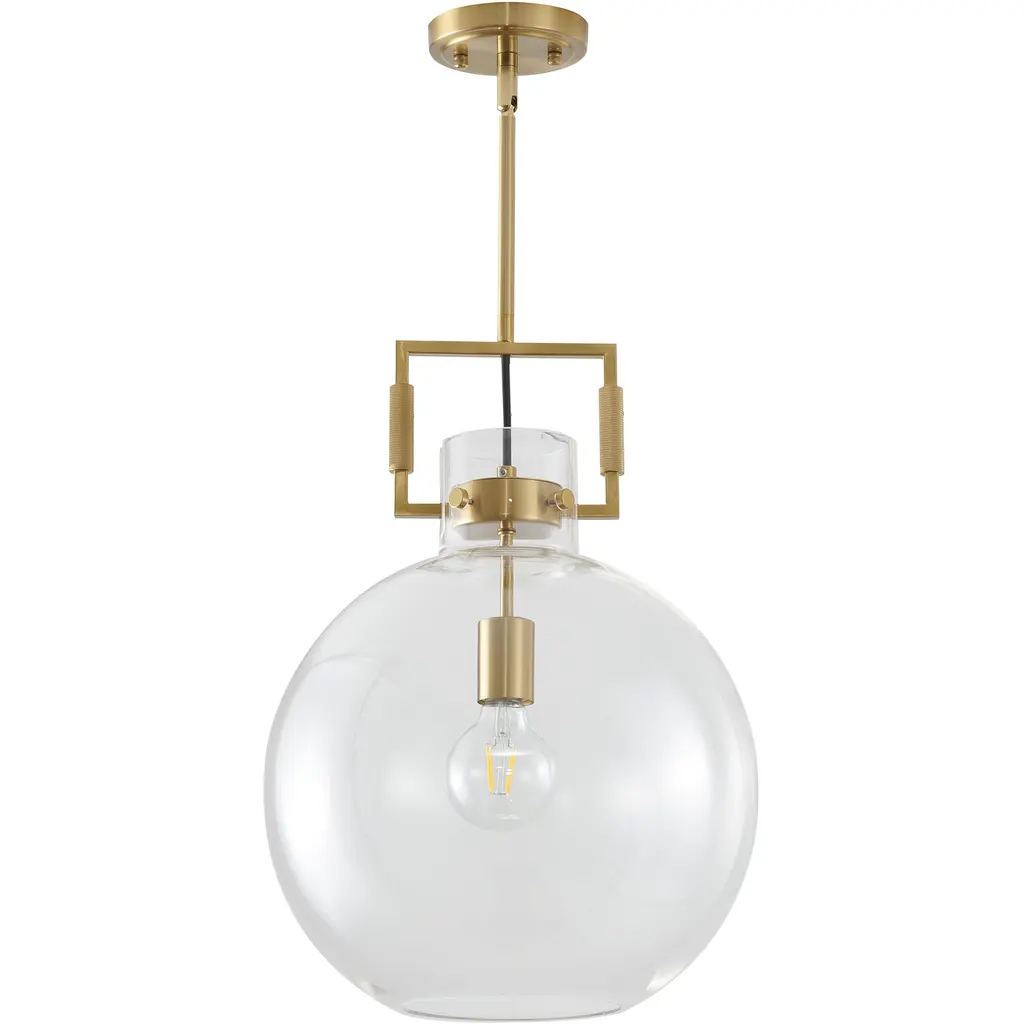This traditional single pendant that adds a touch of sophistication to any room. Measuring 14 inches in diameter and 20 inches high, this pendant is a compact and versatile option that can be hung from a ceiling. The brass frame provides a warm and rich tone, while the clear glass shade adds a touch of simplicity and elegance. This pendant provides bright and warm light, making it perfect for bedroom, living room, dinning room, entryway, or hallway.