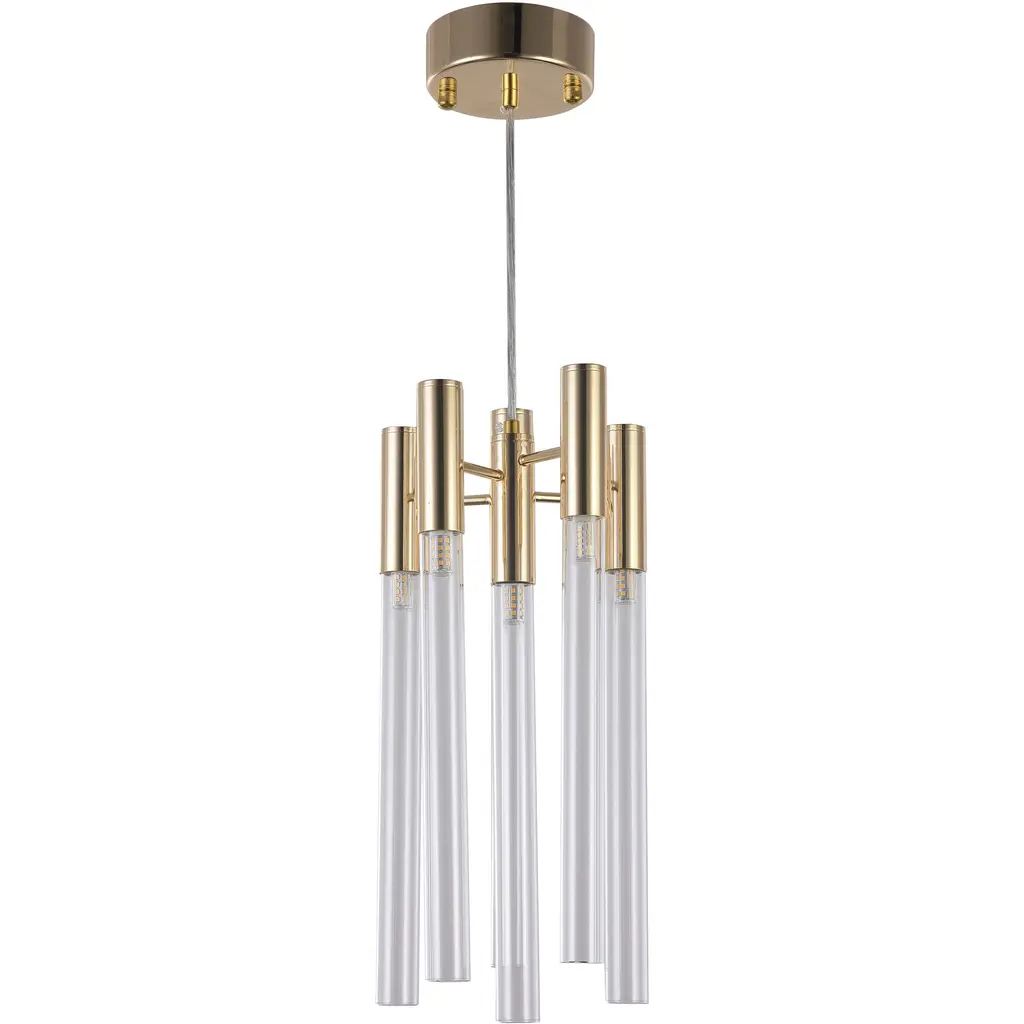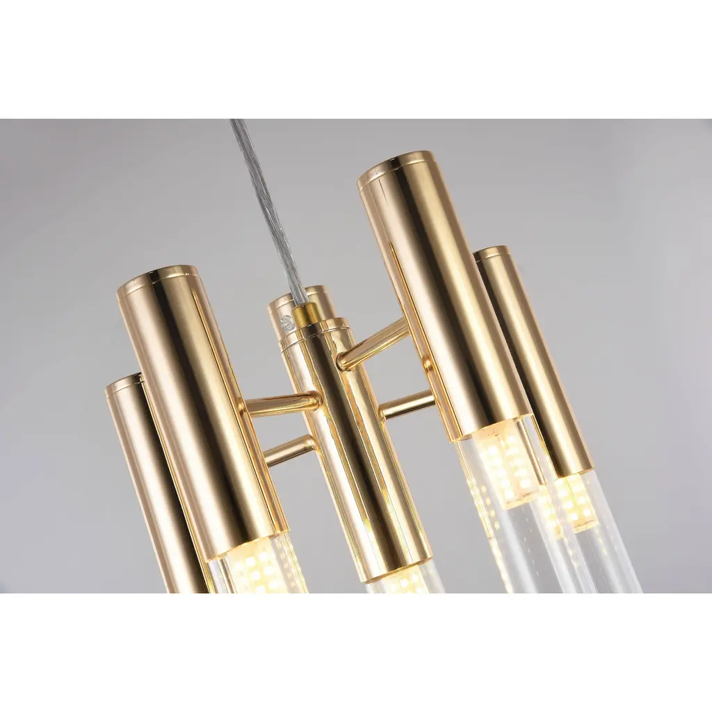 This traditional pendant features a gold metal frame that adds a touch of luxury and sophistication to any room, paired with a glass tubes that add a sense of modernity and simplicity. The fixture has a height of 17.7 inches and a diameter of 7.8 inches, making it a compact and stylish addition to any space. The lighting fixture is designed to accommodate 6xG9LED bulbs (Bulbs Not Included), each with a wattage of 5W, providing a bright and energy-efficient glow. The combination of gold frame and glass tubes creates a beautiful contrast that is sure to catch the eye, making this pendant light a perfect addition to any room such as bedrooms, living rooms, kitchens, or hallways.