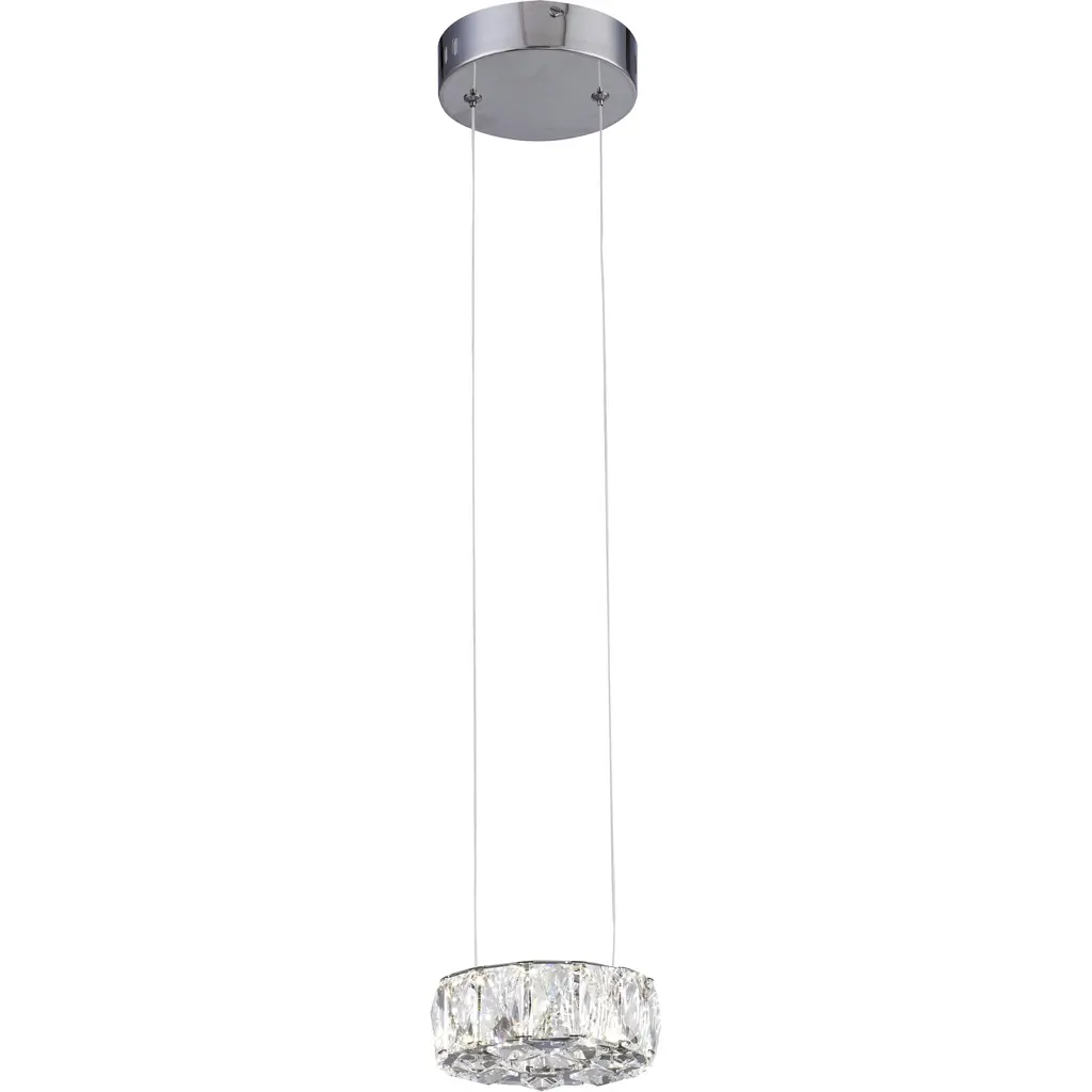 This transitional chrome LED single pendant light is a stunning addition to any room. Measuring 4.7 inches in diameter and 14 inch in height, it's a compact and elegant piece that provides a warm and inviting glow. The round crystal cover is made of high-quality crystal and is designed to refract and diffuse the light, creating a beautiful and unique visual effect. The pendant light features a 5W LED bulb with a 4000K color temperature, providing a bright and energy-efficient light source. This makes it perfect for illuminating a kitchen, dinning room, bedroom, or living room.