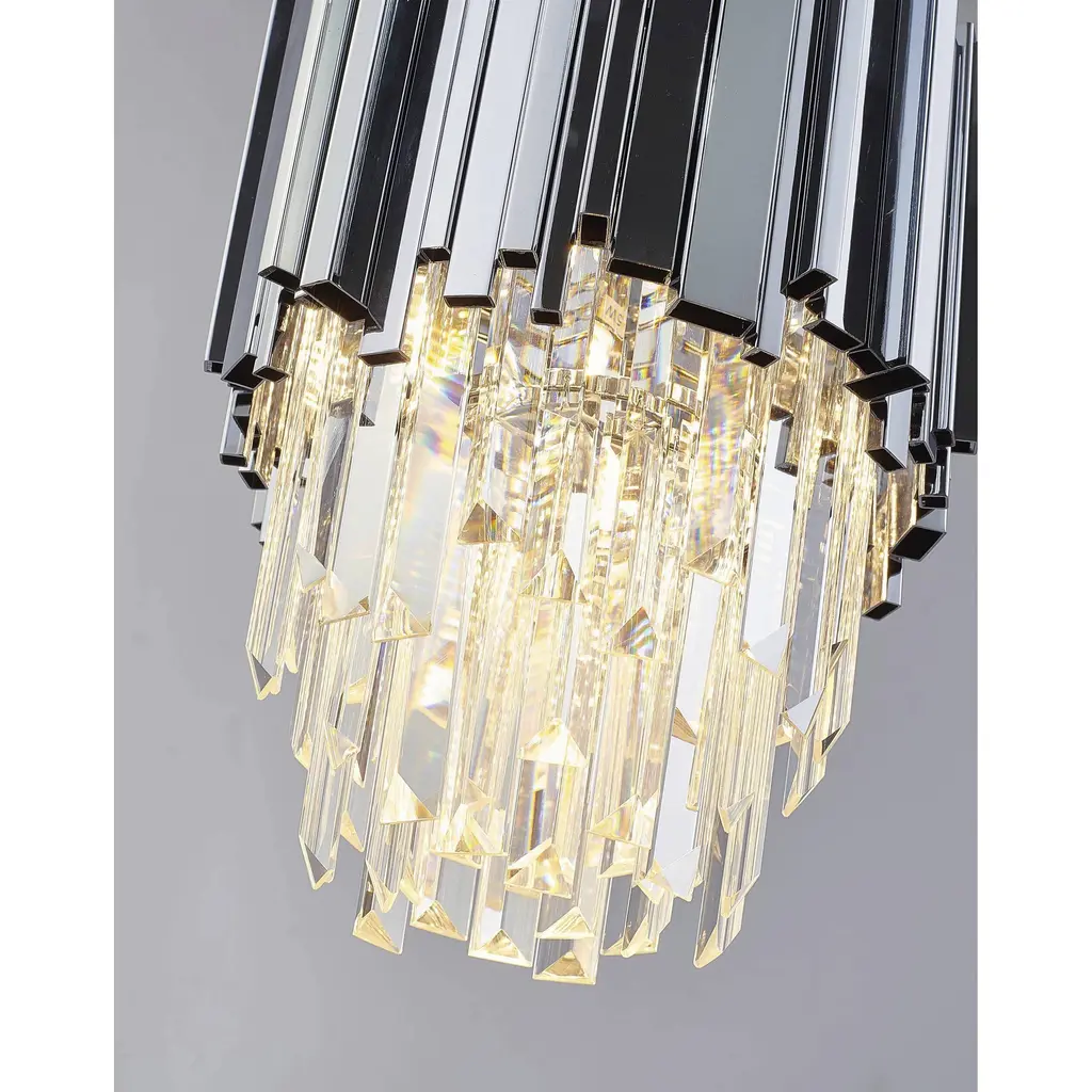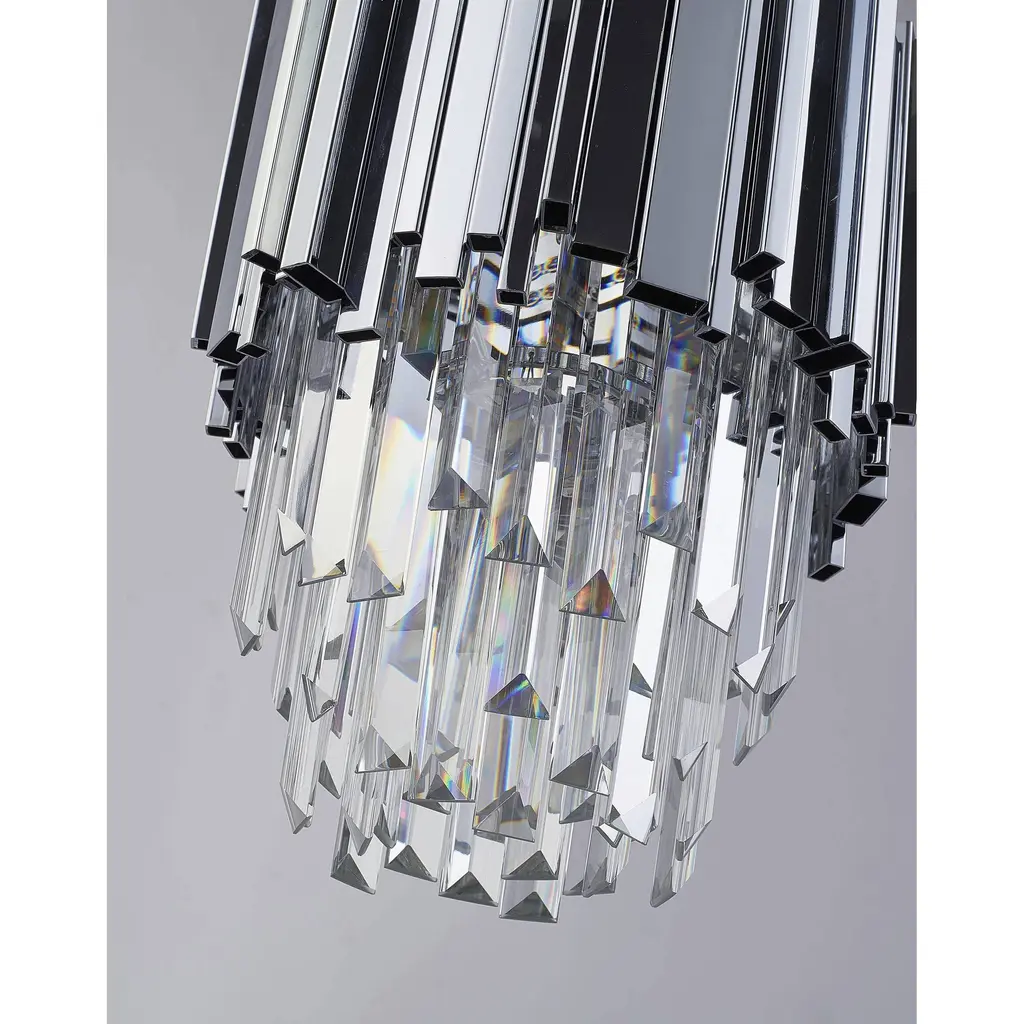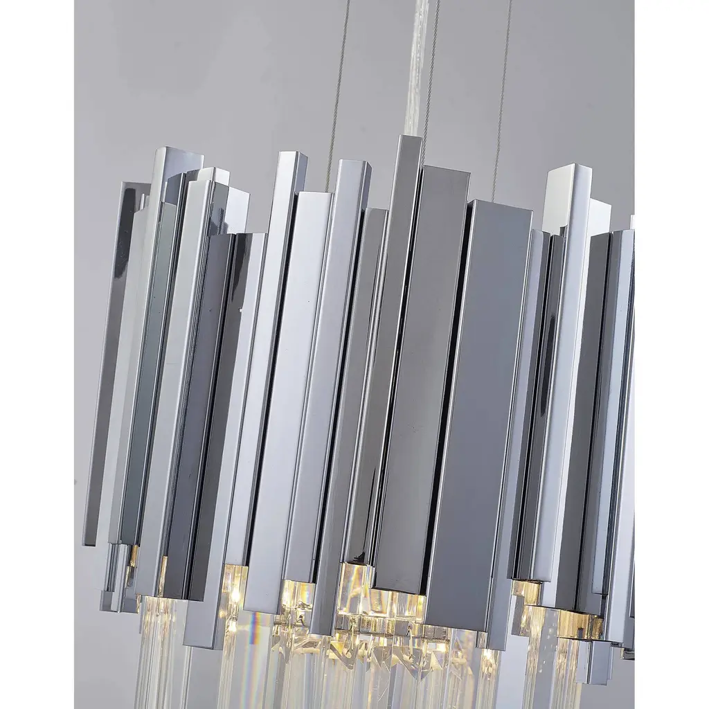 This transitional single pendant is stunning with a chrome stainless steel frame decked with strands of faceted clear distorted crystals, and the crystals further highlight the uniqueness of this chandelier. When you hang this modern chandelier in your home, you will easily be surprised by the magnificent light reflected by the crystals. If you are also looking for a light source for your living room, bedroom, hallway, or dinning room, this pendant can easily fit into your modern home decor. The adjustable cord links make this fixture suitable for most ceiling heights