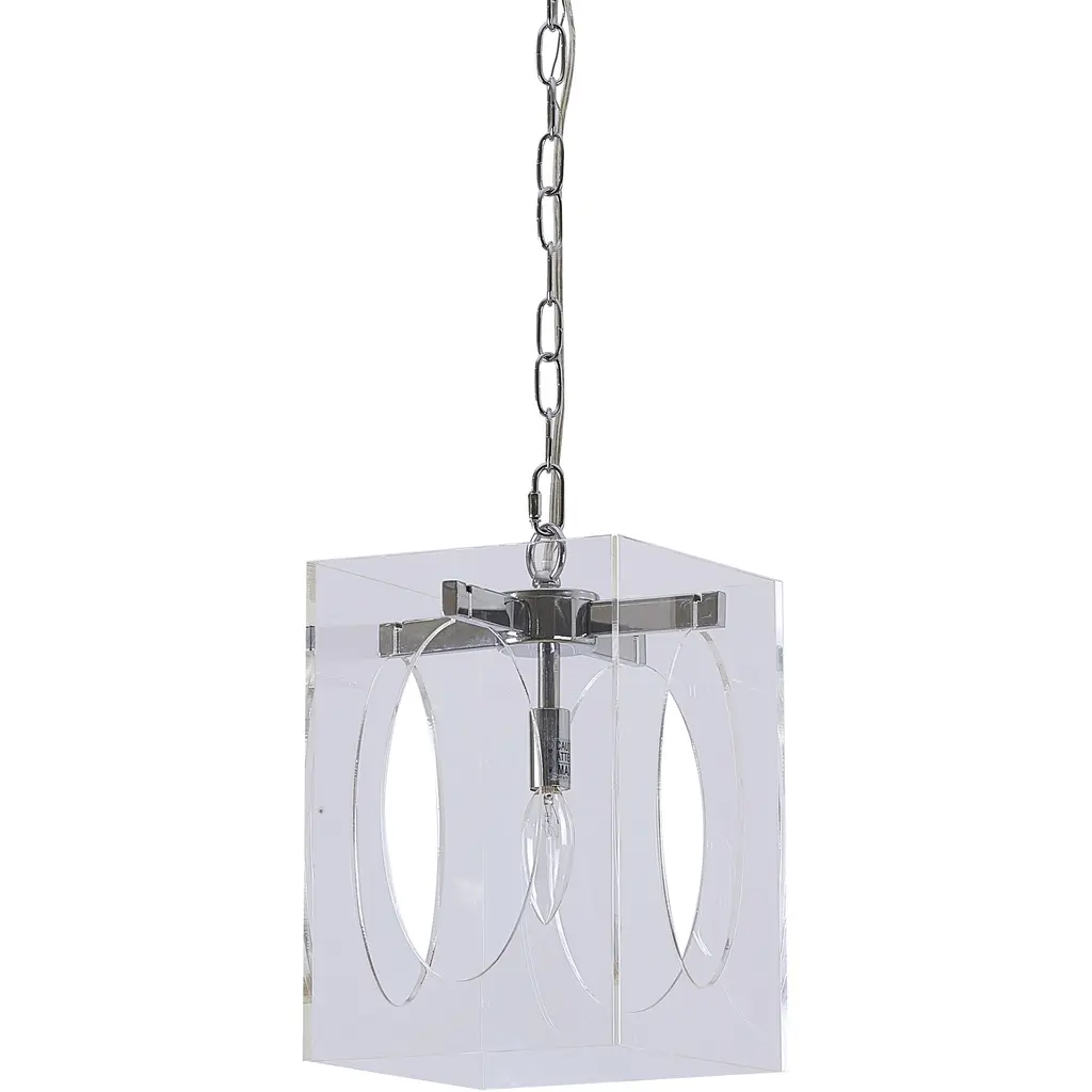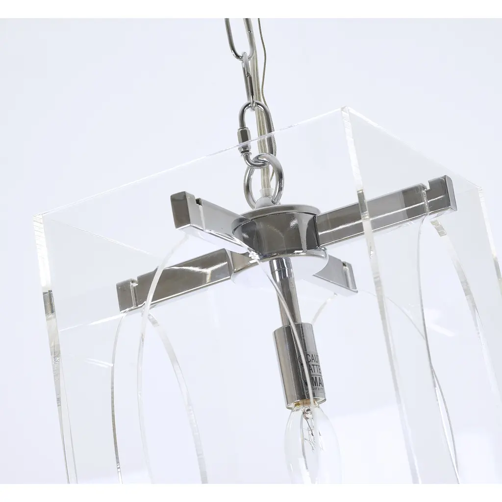 This transitional pendant is a stunning lighting fixture that exudes classic elegance. The chrome metal frame adds a touch of sophistication and luxury, while the clear acrylic shade provides a crisp and modern contrast. The pendant is designed to accommodate one 60W E12 bulb (Bulbs Not Included), which provides ample lighting for a small to medium-sized space. The dimensions of the fixture are 8.75 inches long, 8.75 inches wide, and 11.8 inches high, making it a great option for bedroom, living room, dinning room, kitchen island, or entryway.
