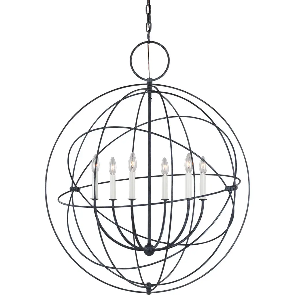 Bayberry by Chapman & Myers was designed based on the frame of an armillary sphere - which is an antique astronomical model used to depict the movements of the stars and sun. Each ring of the Bayberry pendant is based on a vintage armillary sphere model. Bayberry was designed with thin metal tubing, candles, and Weathered Galvanized finish v giving it a light and airy feel. The assortment includes a small, medium and large pendant.