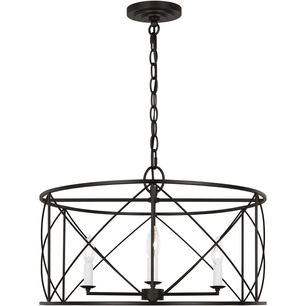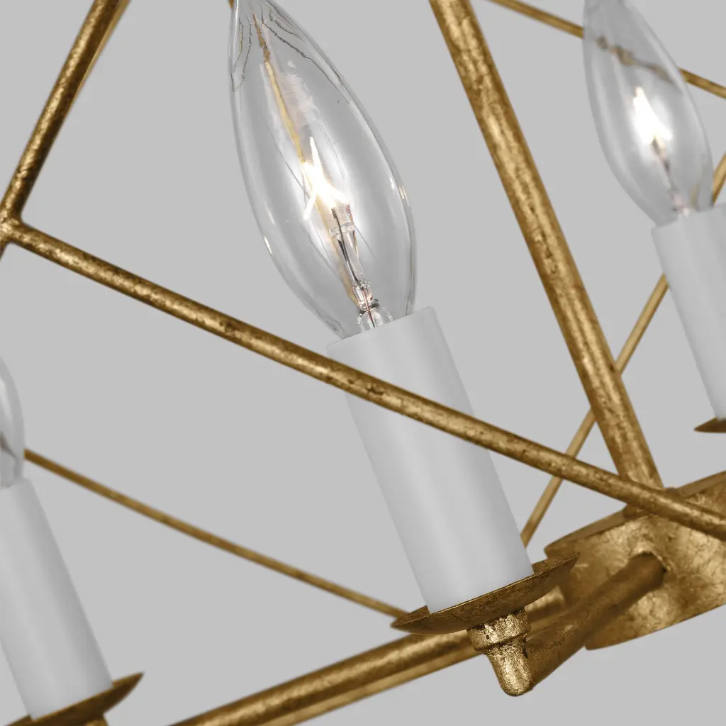 The Beatrix series by Chapman & Myers is open-caged design chandelier adding a bright light to any modern farmhouse home decor. It features white candelabra candle holder and refined finishes, showing a classic and rustic flair. Each lantern has a distinctive X cross detailing on their frame which adds both strength and visual interest. Ideal for over a kitchen island or dining room table.
