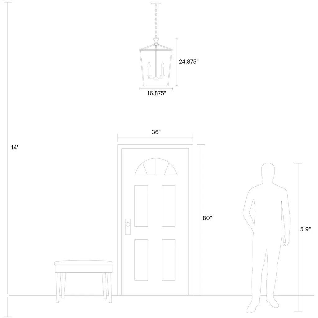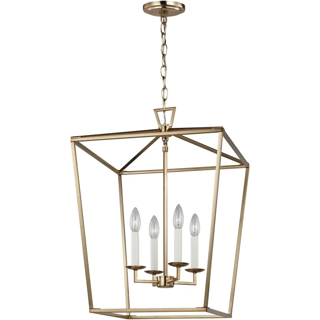 The Dianna four light indoor pendant in satin brass is the perfect way to achieve your desired fashion or functional needs in your home. The open, airy iron frame of this three-dimensional lantern brings depth and structure to any space.