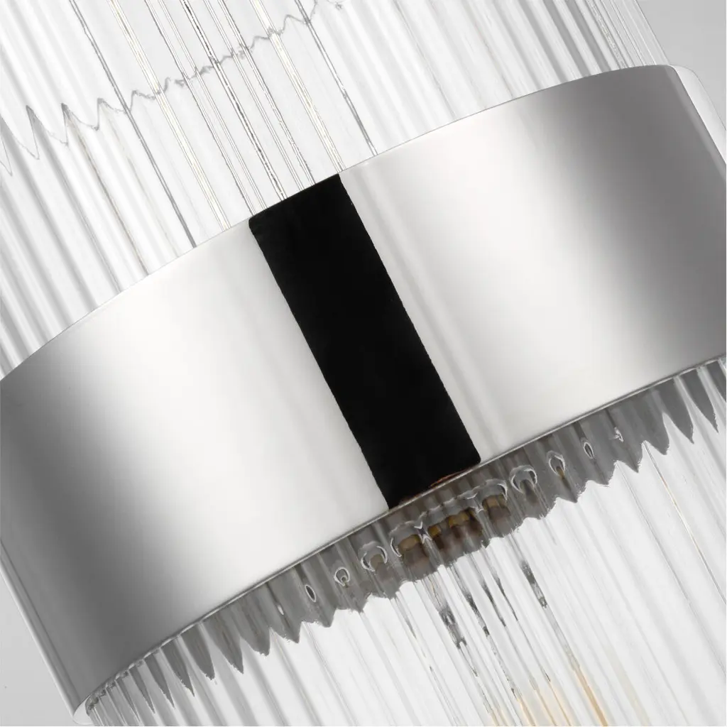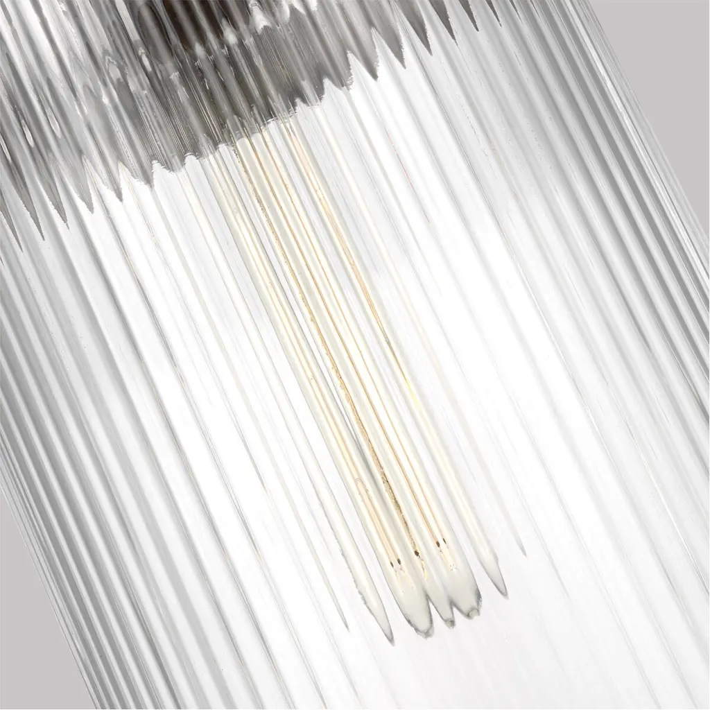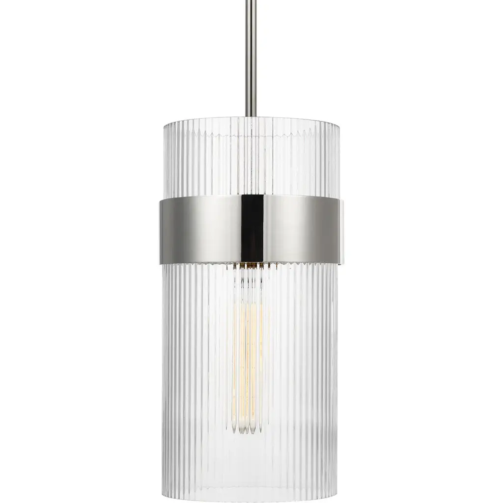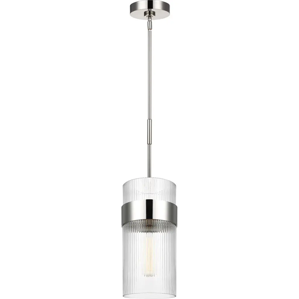 In the Geneva one light indoor pendant, a fluted shade forms an elegant, dynamic silhouette that's balanced by a strong frame of Burnished Brass or Polished Nickel.