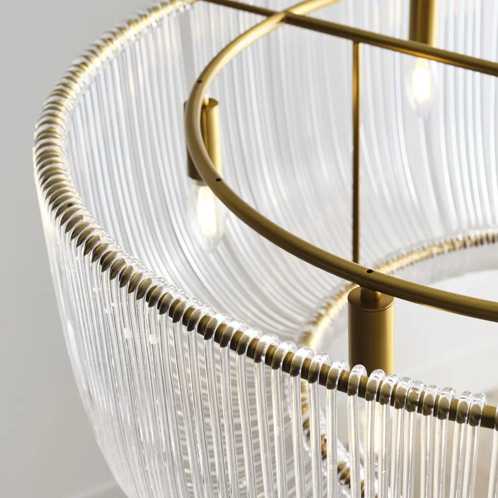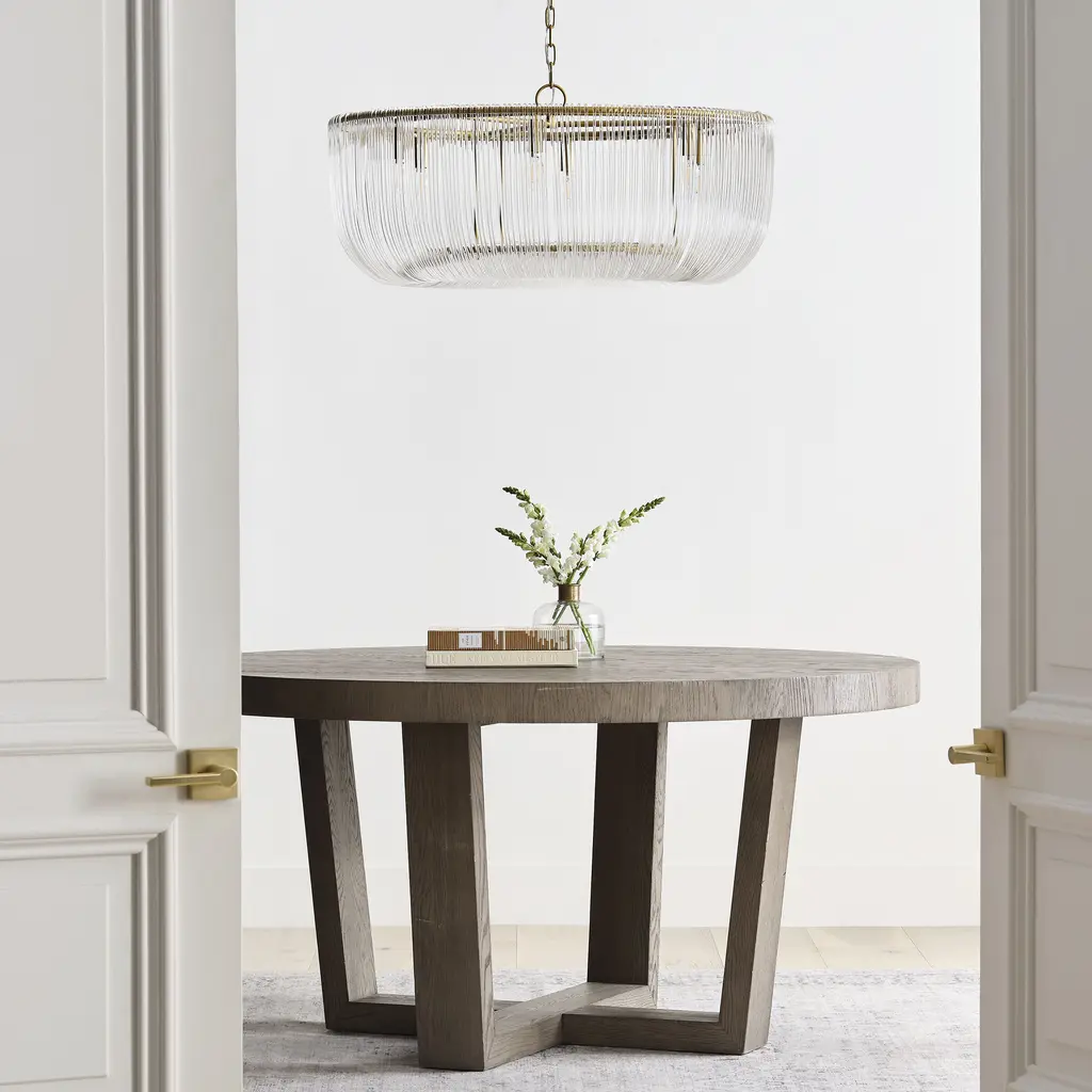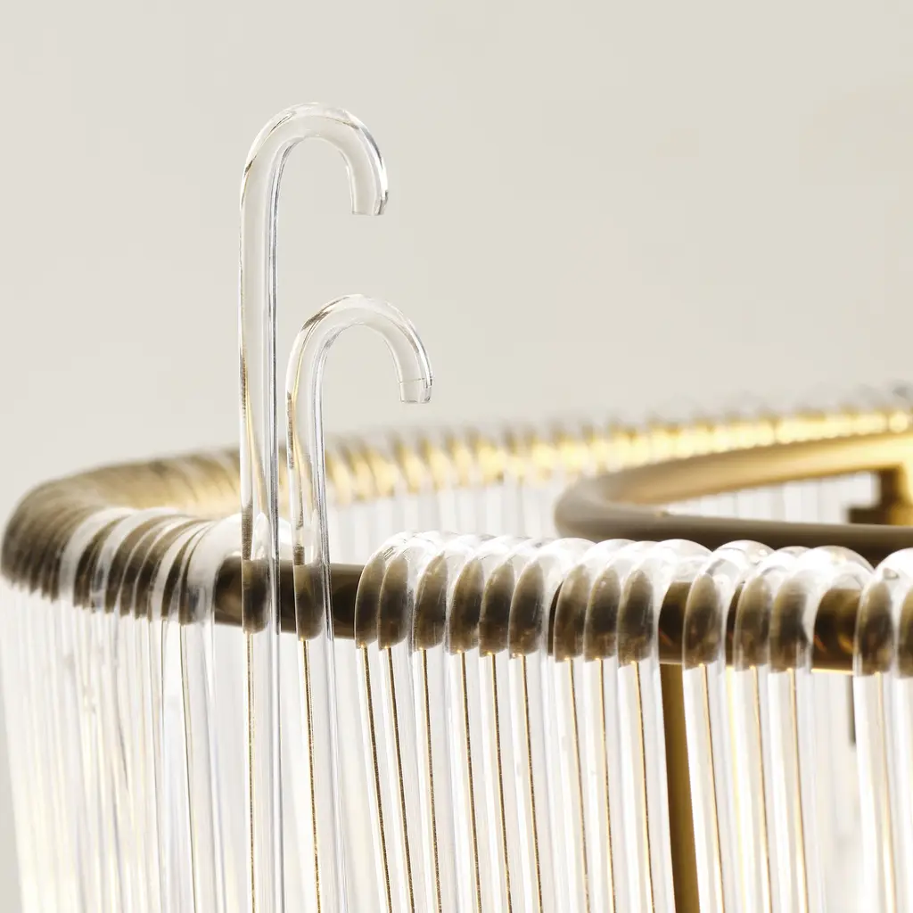 Inspired by traditional crystal basket chandeliers, the Pierce series by Chapman & Meyers updates the classic look with individually bent glass rods. Each rod is carefully looped at the ends to hook onto the metal frame creating minimal details, while the interior candelabra bulbs emit and refract light through the bent glass. The Pierce flush mount will lend an elegant and scintillating touch to living and dining rooms, bedrooms, hallways and entryways.