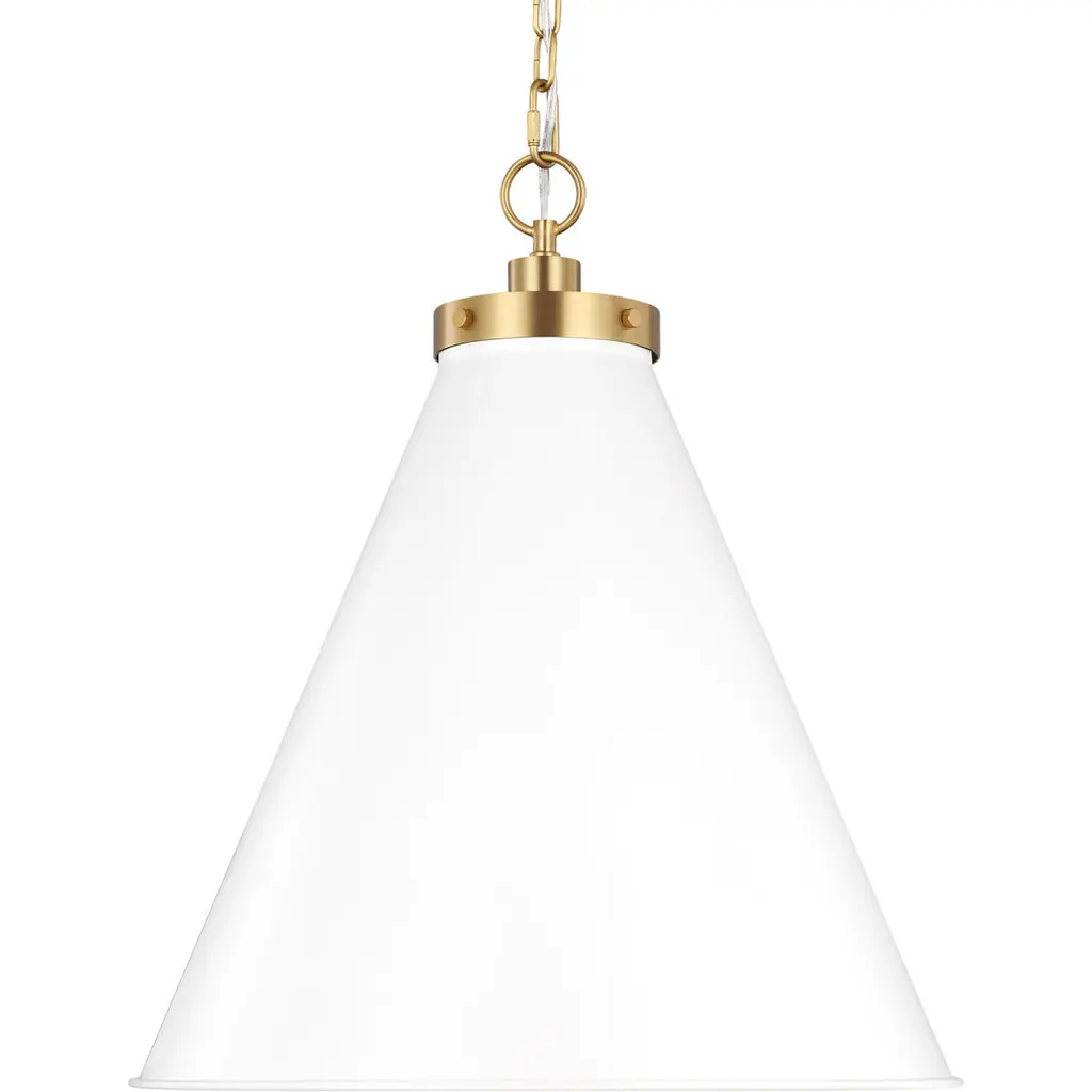 C&m By Chapman & Myers Wellfleet 1 Light 19.5 Inch Matte White And Burnished Brass Pendant Ceiling Light In Matte White / Burnished Brass