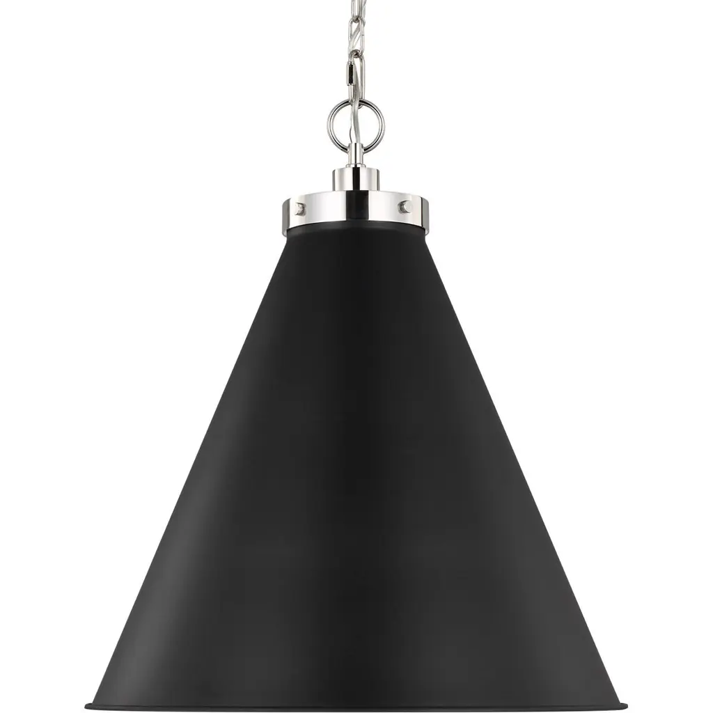 C&m By Chapman & Myers Wellfleet 1 Light 19.5 Inch Midnight Black And Polished Nickel Pendant Ceiling Light In Midnight Black / Polished Nickel
