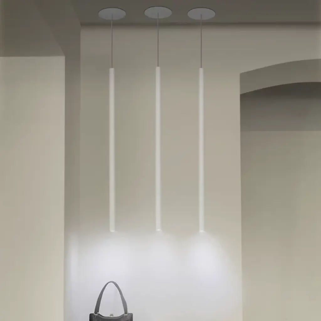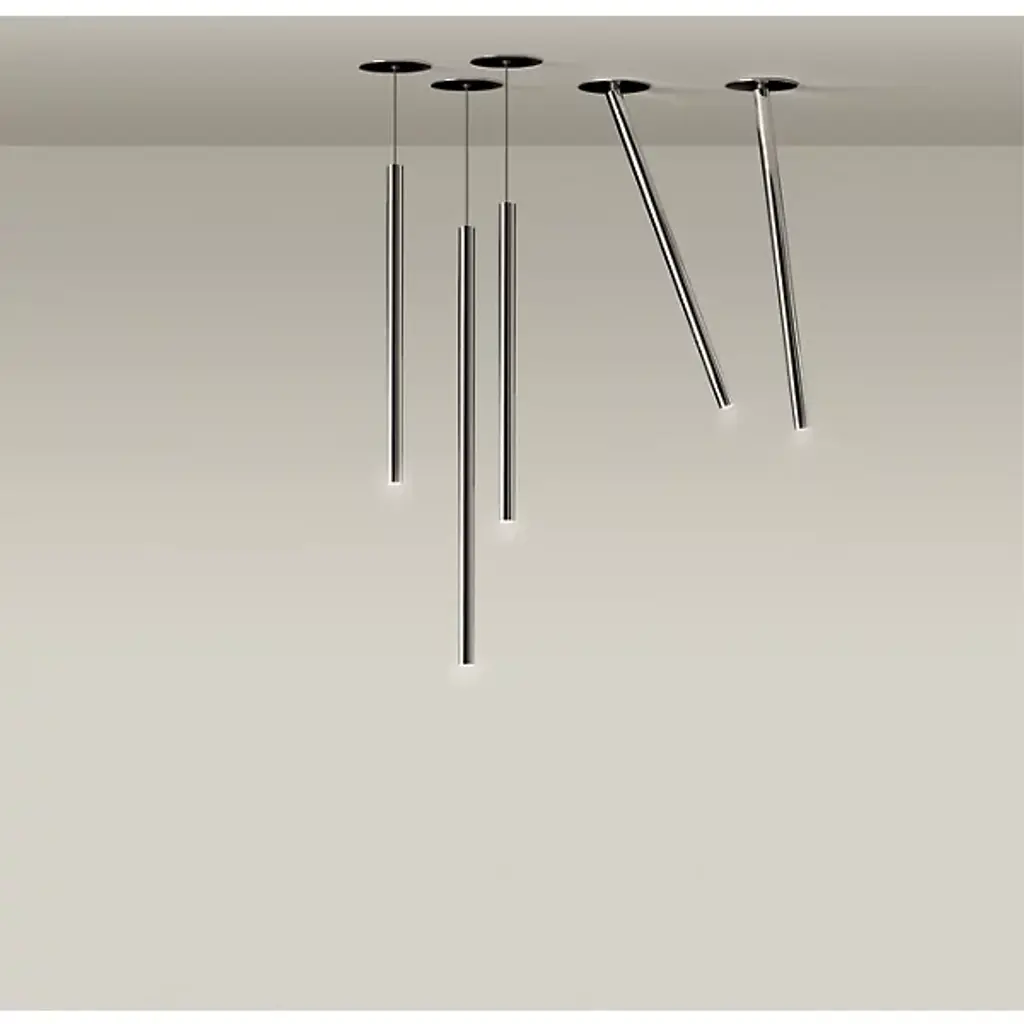 Canna Nuda LED Mini Pendant is a striking lighting collection that plays with form and light in beautifully versatile ways. In sandblasted glass, its cylinders create a soft, diffused glow, while the metal version offers precise spot lighting. The ceiling variant adds flexibility with adjustable orientation. Designed by Piero Castiglioni and Roberto Menghi, this collection strikes a thoughtful balance between harmony and function, making it easy to adapt to various spaces while adding elegance and character to your interior.
