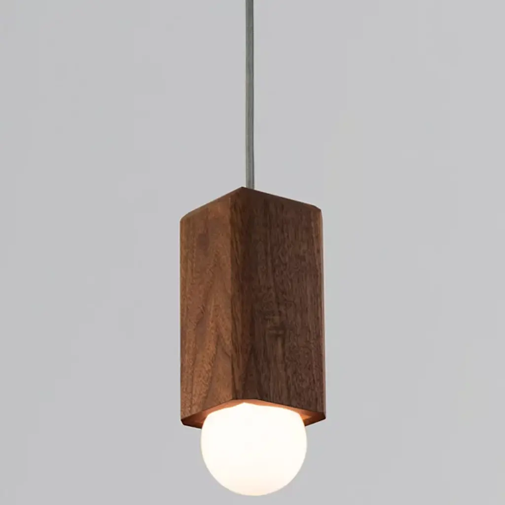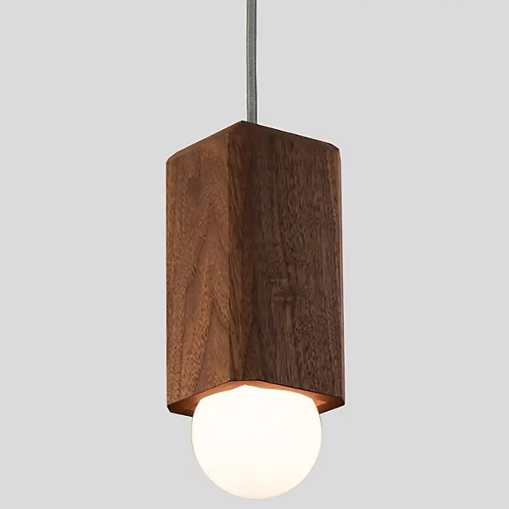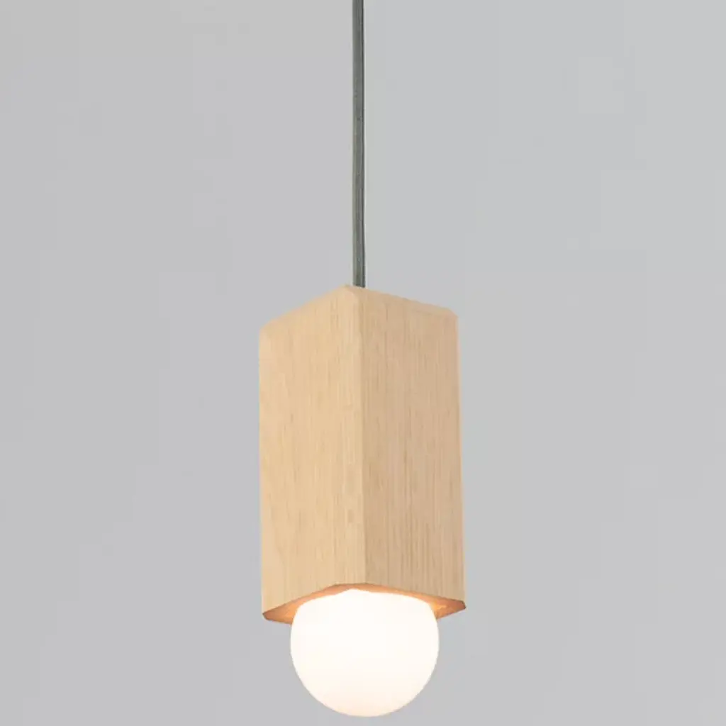 Eco-friendly, handcrafted perfection. Featuring the natural beauty of woodgrain combined with geometric inspiration, the Cano Pendant by Cerno provides beautifully diffused downlighting that will transform the ambiance of any setting. Made of subtly faceted Solid Wood and paired with a bold spherical shade, designer Nick Sheridan's intention to showcase this contrast in form is realized in full force. This fixture works well when mounted on its own as accent lighting in the living room, and also has a dynamic effect when hung in a series in the entryway, kitchen, dining room or bar area due to its clean lines and minimalist aesthetic. This piece is handmade in the USA and is ready to upgrade your ambiance to new levels.