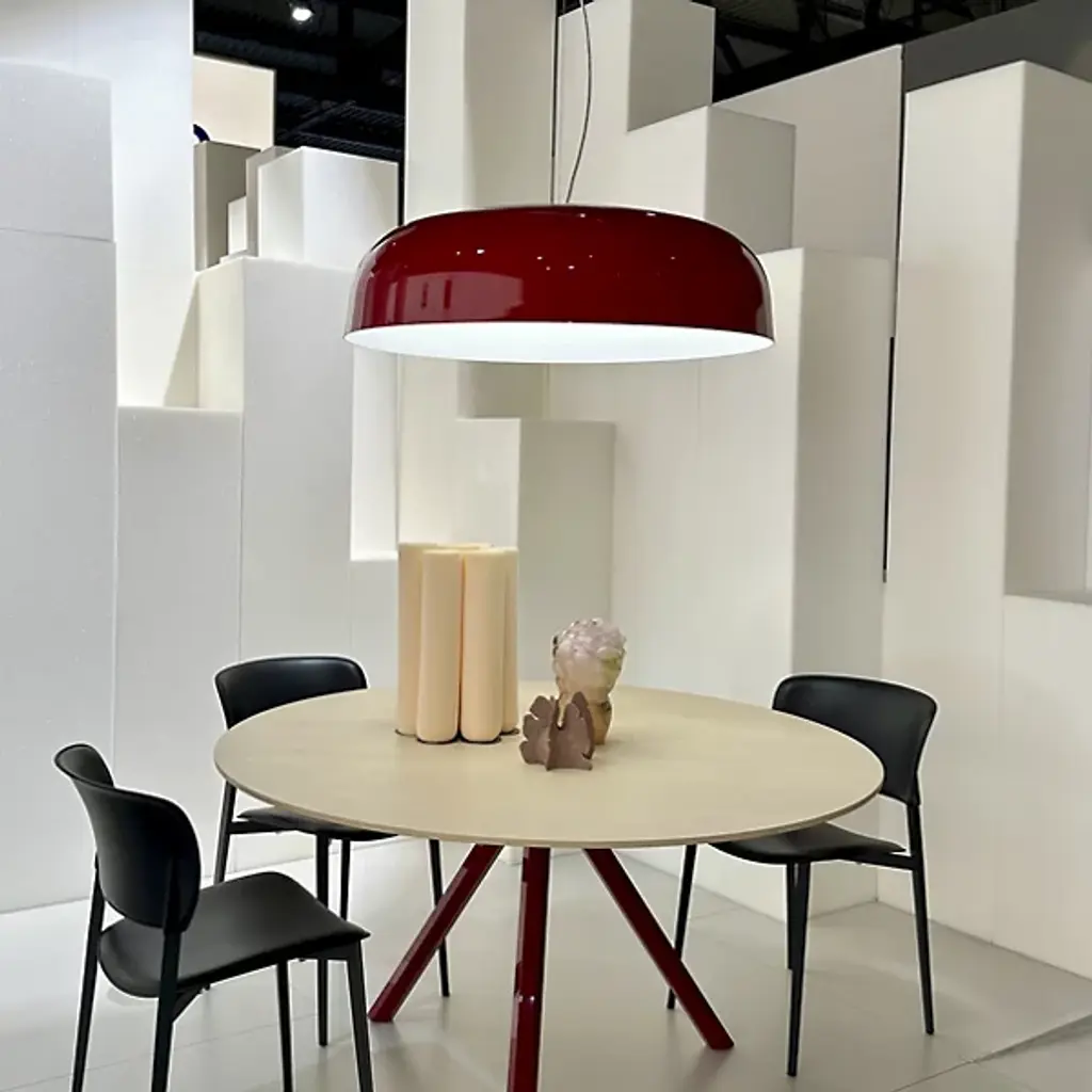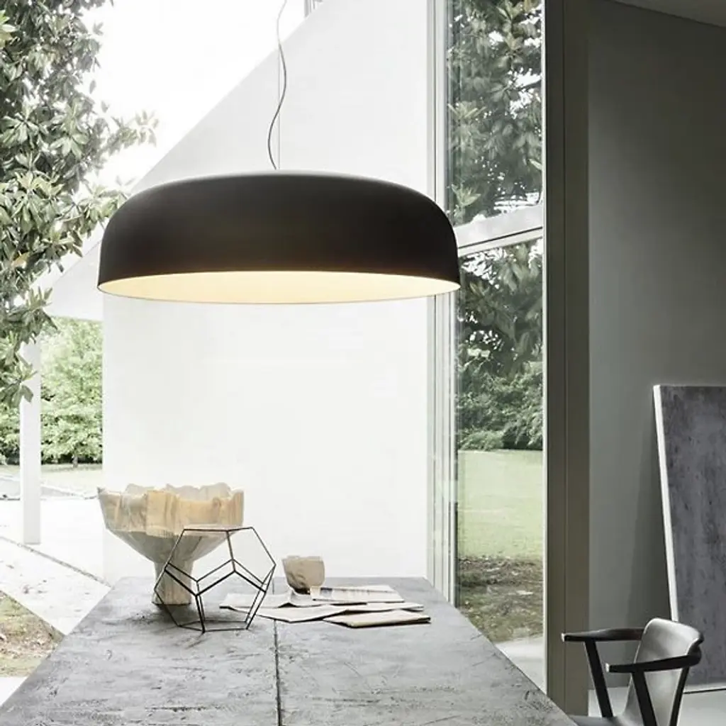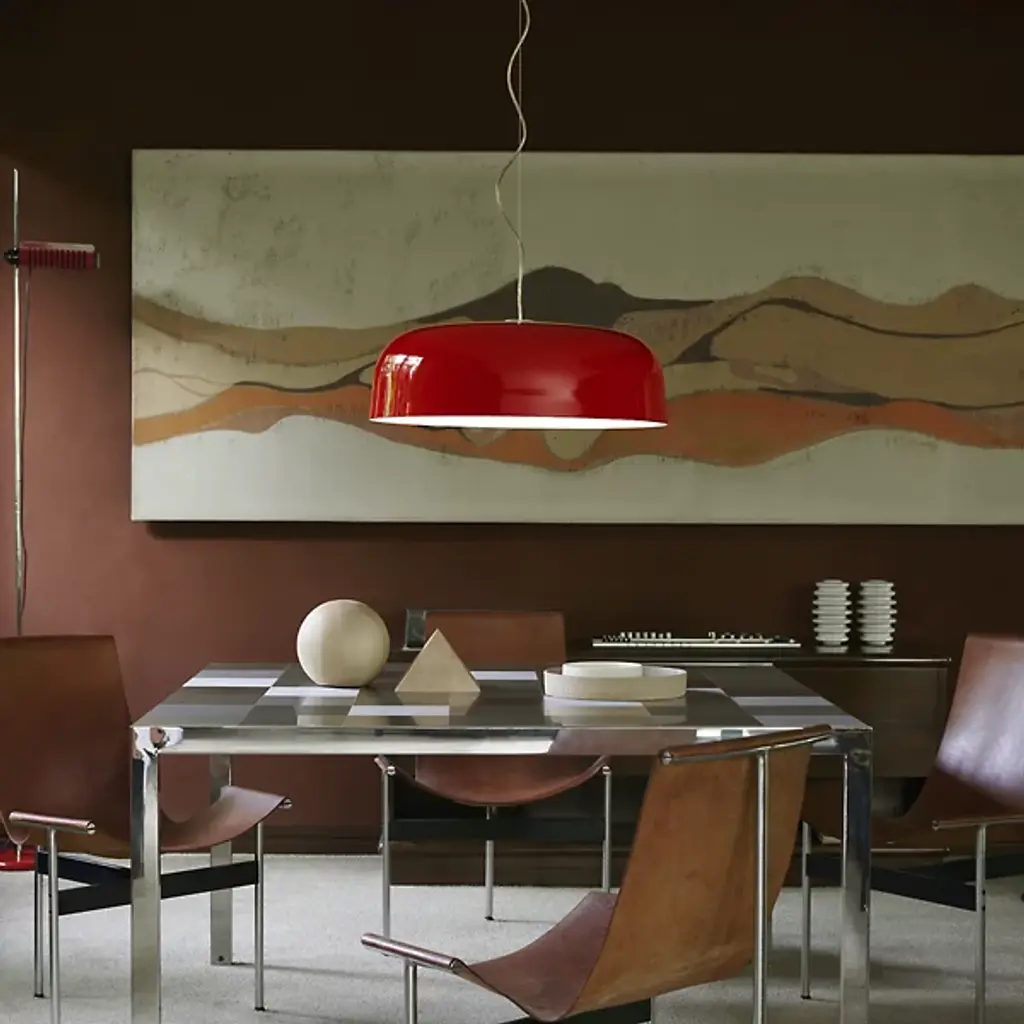 The Oluce Canopy LED Pendant takes the classic dome shape and gives it a more slender profile, featuring a wide metal shade with highly reflective down light. The shade is actually inspired by the shape of a ceiling plate (hence its name), taking a functional piece of a lighting fixture and transforming it in to something for decorative purposes.