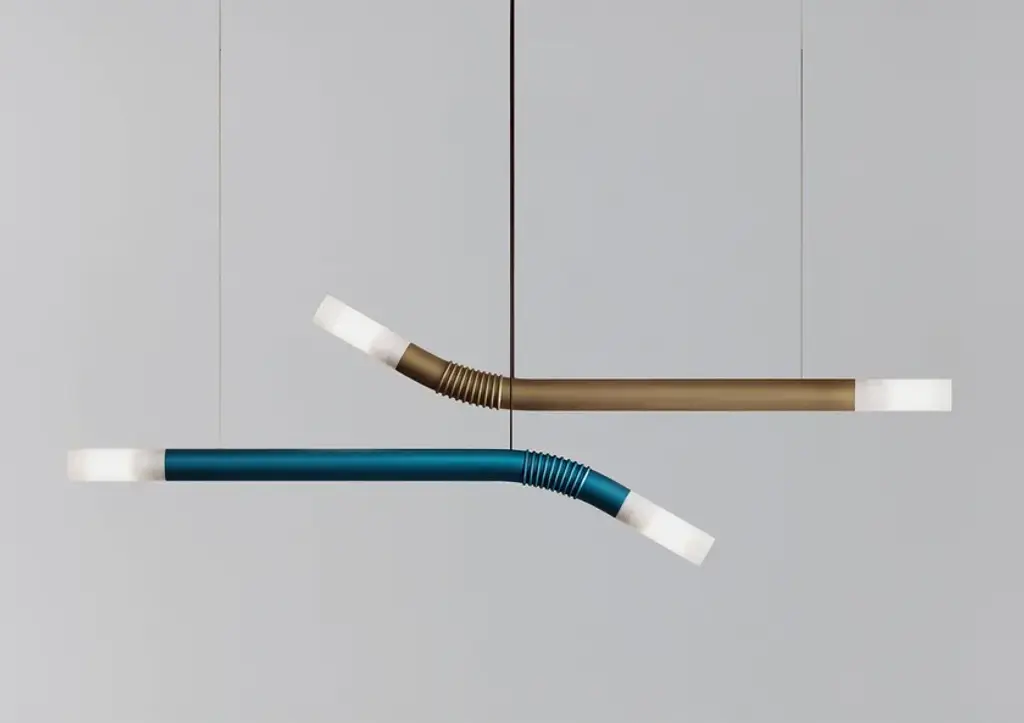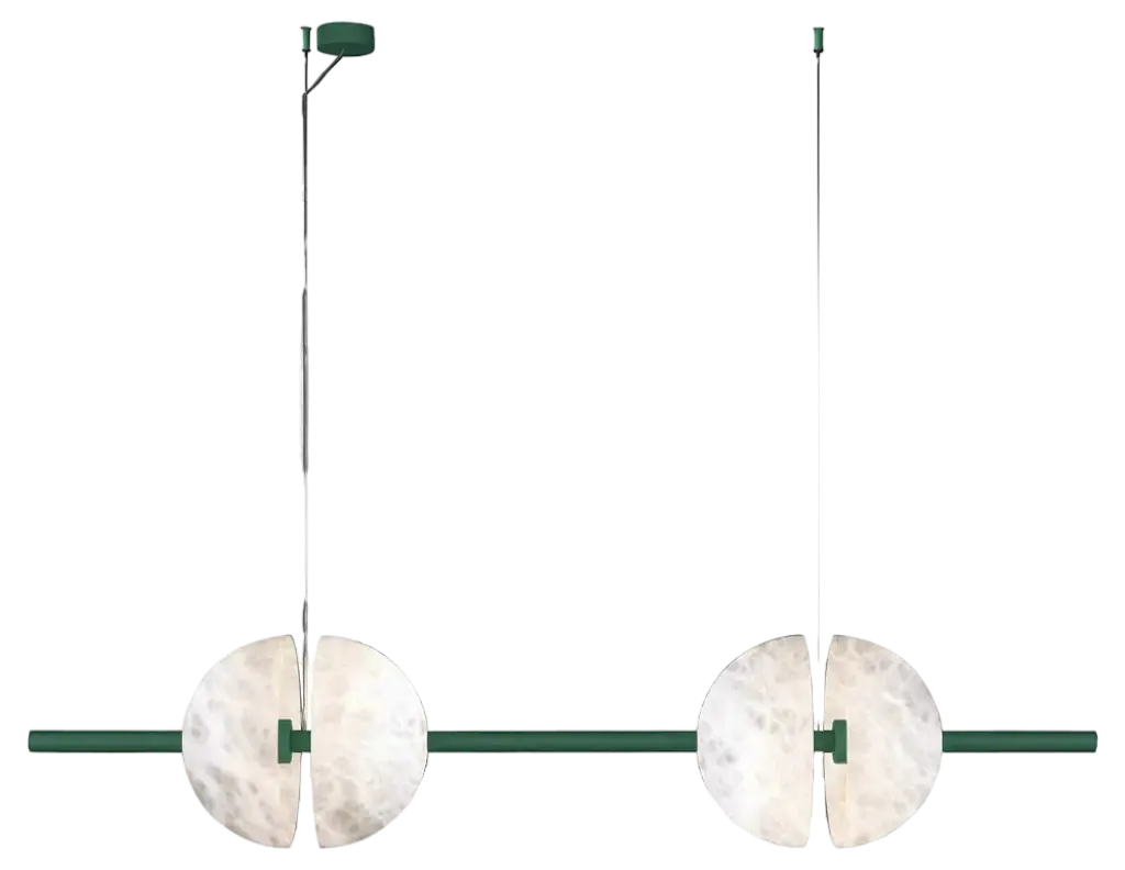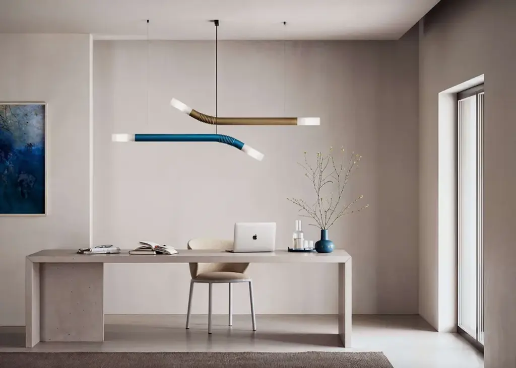 Cantabrina is a pendant lamp made of glass, available in matte ocean blue, satin titanium, or satin brass finishes. It features glossy white glass diffusers and matte black metal parts.Electrical Specifications:4x10w - E27 LED IP 20