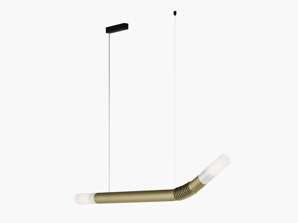 Cantabrina is a pendant lamp made of glass, available in matte ocean blue, satin titanium, or satin brass finishes. It features glossy white glass diffusers and matte black metal parts.Electrical Specifications:2x10W – E27 LED – IP20