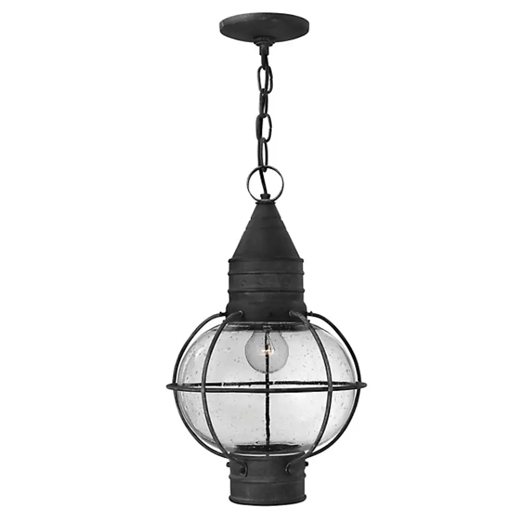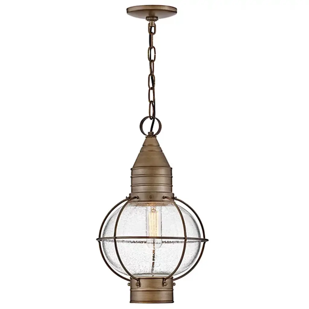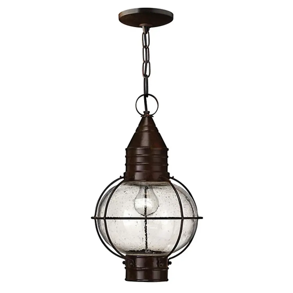 Drawing inspiration from New England style, the Cape Cod Outdoor Pendant by Hinkley Lighting showcases a classic onion-shaped design. Its bold caged lines accentuate a sturdy profile, while the clear seedy glass adds a touch of vintage charm. With a timeless aesthetic, this pendant embodies the enduring allure of Cape Cod, making it an ideal enhancement for your outdoor area. Illuminate your surroundings with charm and character, evoking the nostalgic charm of this iconic region.