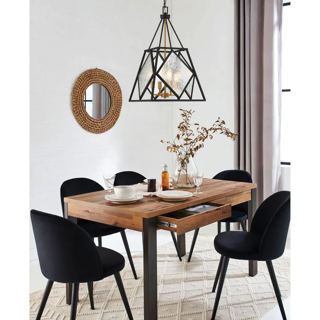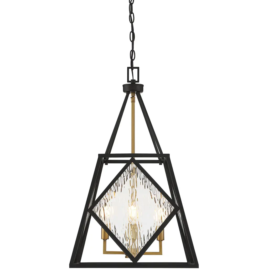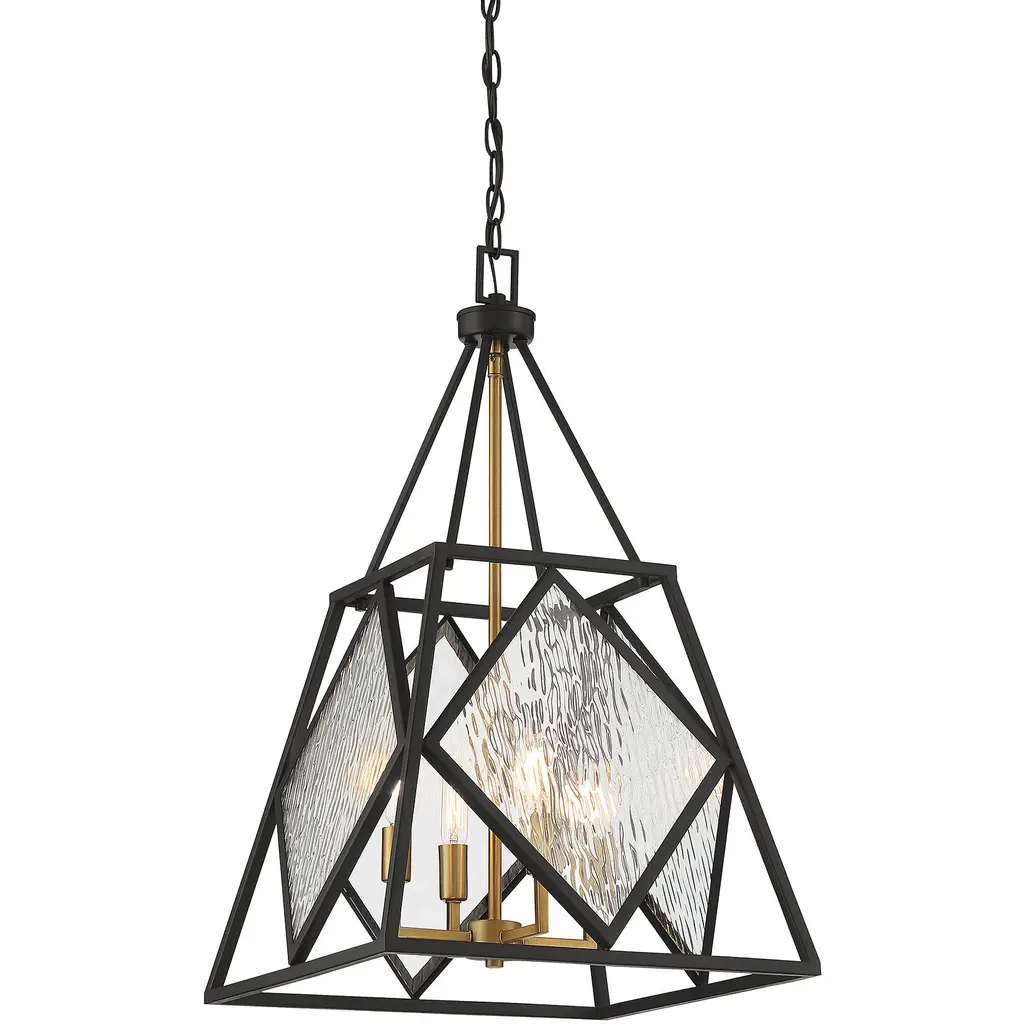 The aesthetic appeal of geometry and a fashionable two-tone finish make the Savoy House Capella 4-light pendant a standout in any room. Measuring 28" tall x 16" wide, it pairs an English bronze finish with warm brass for a more traditional look. The clear water glass panels decoratively diffuse the light from four 60-watt candelabra bulbs.
